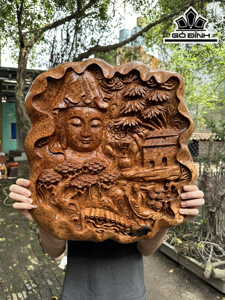 Diện Nhất Tâm Bái Phật Gỗ Nu Ngọc Am Ngang 46 Cao 49 Sâu 5 (cm)