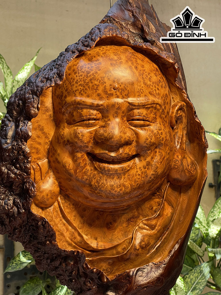 Diện Phật Di Lặc Gỗ Nu Hương Cao 48 Ngang 32 Sâu 10 (cm)