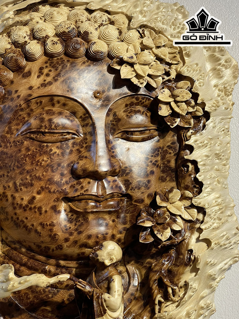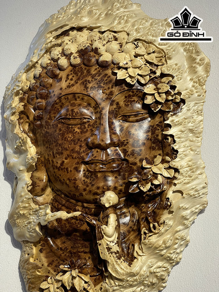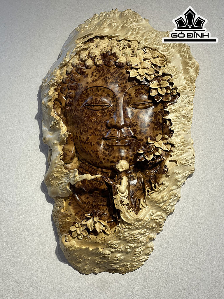 Diện Phật Tổ Gỗ Nu Ngọc Am Cao 62 Ngang 40 Sâu 8 (cm)