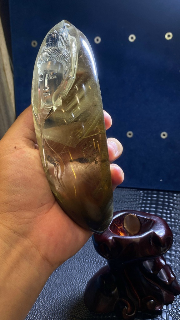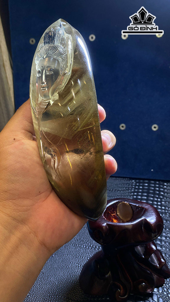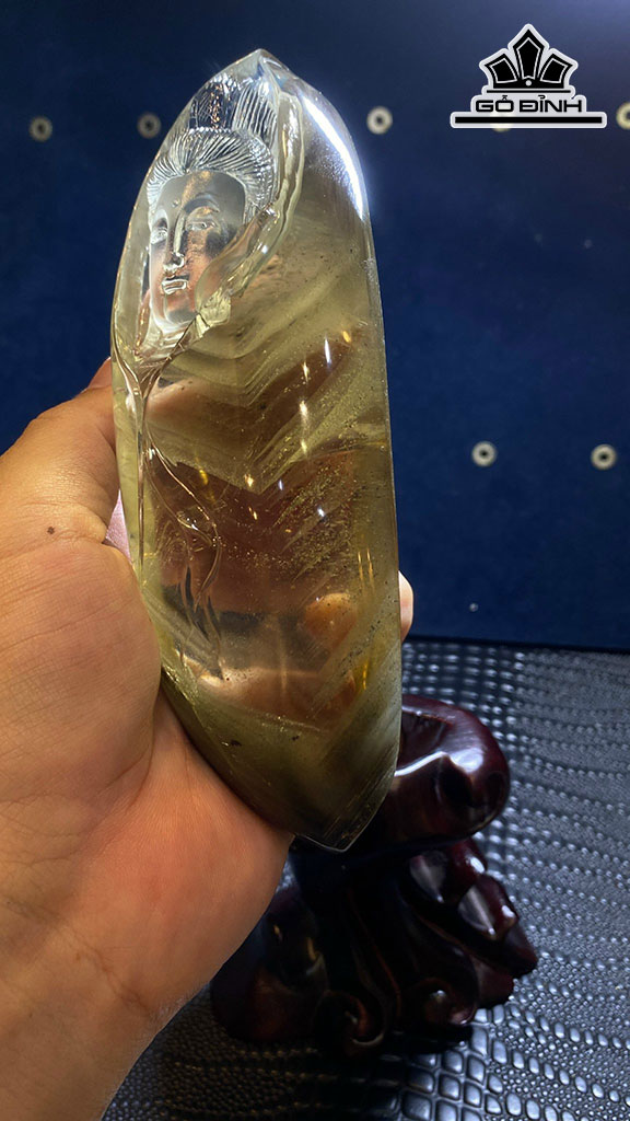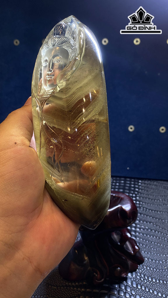 Diện Quan Âm Đá Thạch Anh Ưu Linh Cao 158 Ngang 58 Sâu 48 (mm) 563gr