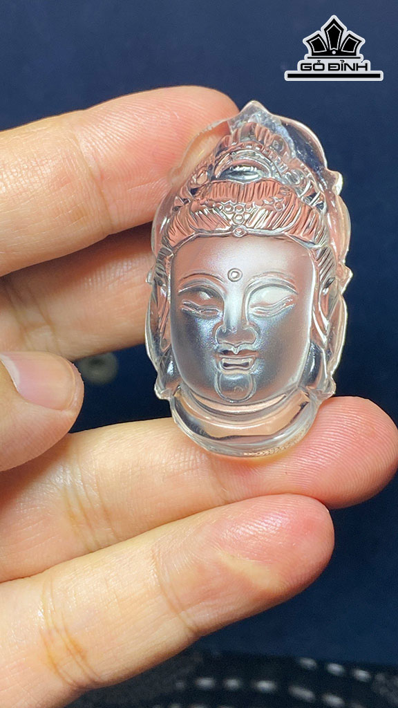 Diện Quan Âm Đá Thạch Anh Trắng Cao 48,8 Ngang 27 Sâu 17 (mm) 28gr