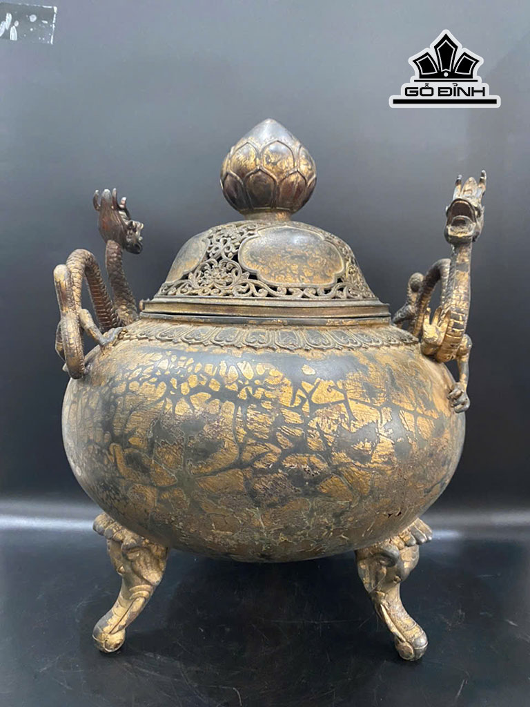 Đỉnh Trầm Quai Song Long Bằng Đồng Cao 47 Ngang 26 (cm) Nặng 13kg