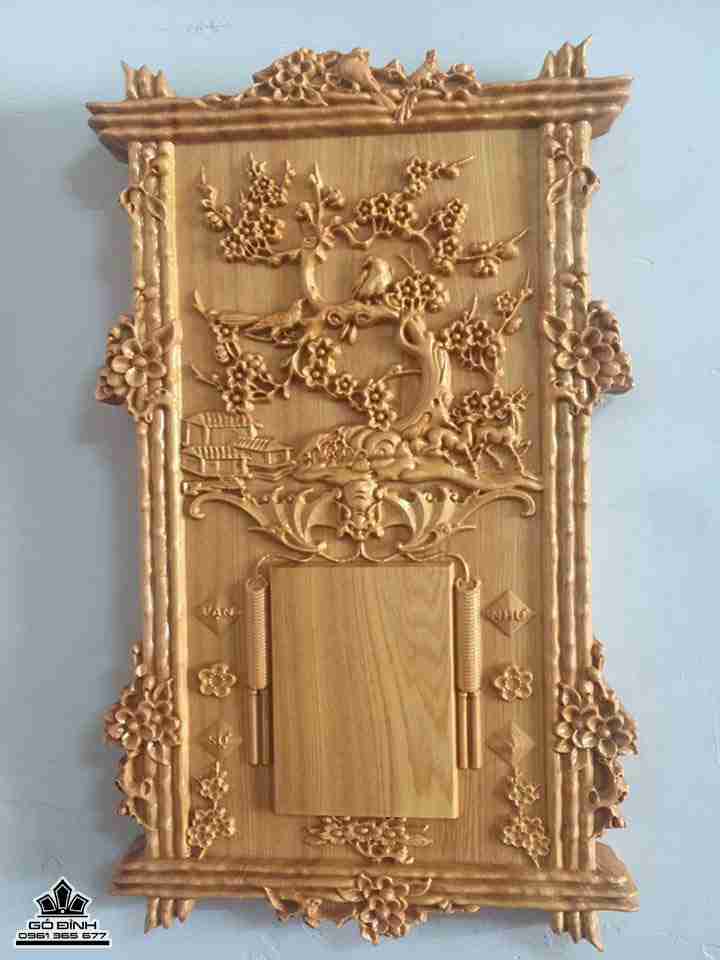 Đốc lịch gỗ hình cây mai phú quý gỗ pơ mu cao 70 rộng 40 dày 4 (cm)