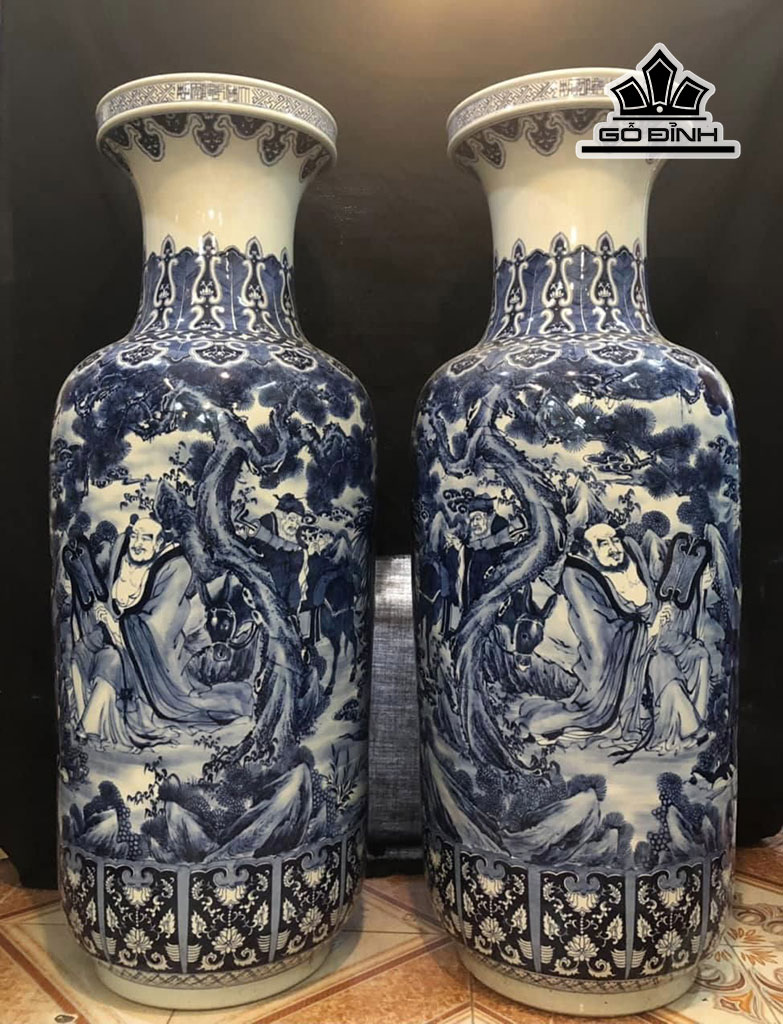 Đôi Bình Dáng Bí Vẽ Tích Bát Tiên Gốm Tàu Cao 120 Đường Kính Bụng 154 (cm)