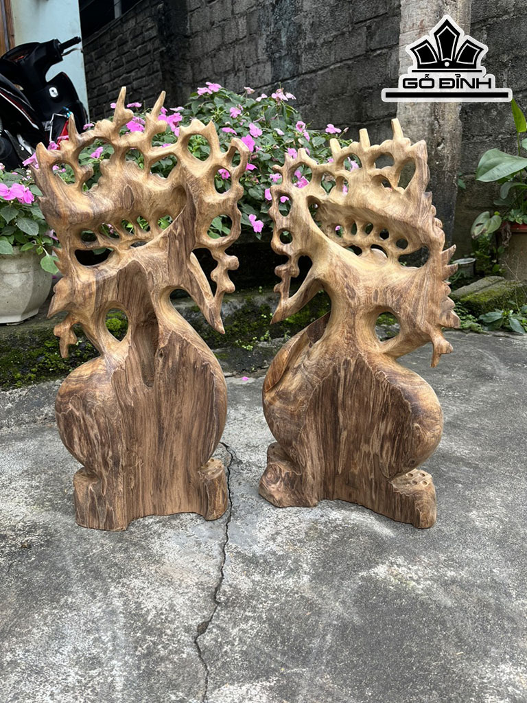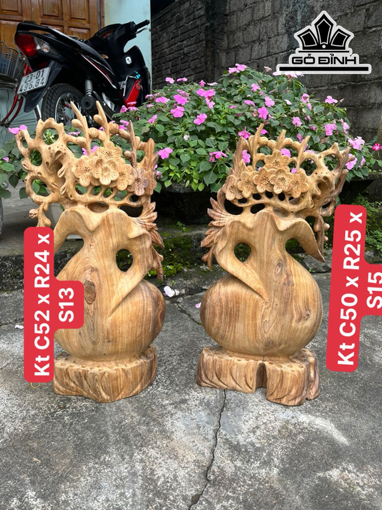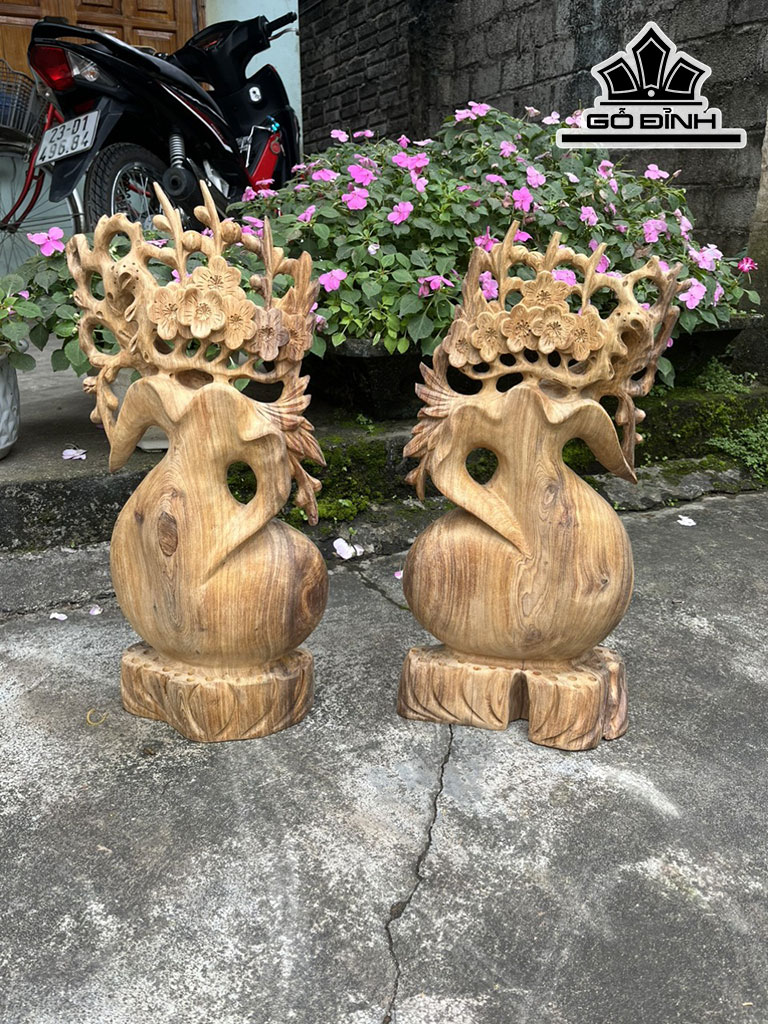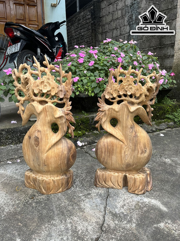Đôi Bình Hoa Mai Gỗ Ngọc Am Cao 52-50 Ngang 24-25 Sâu 13-15 (cm)