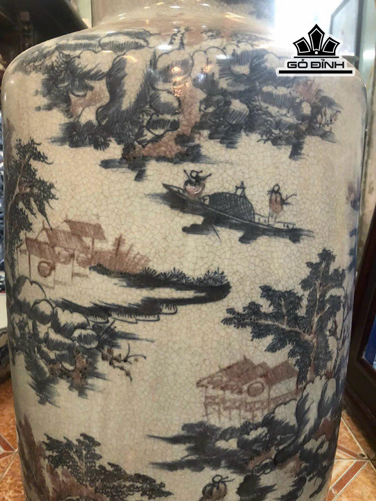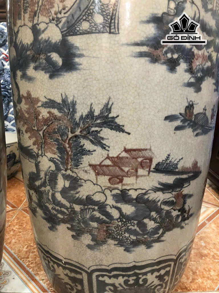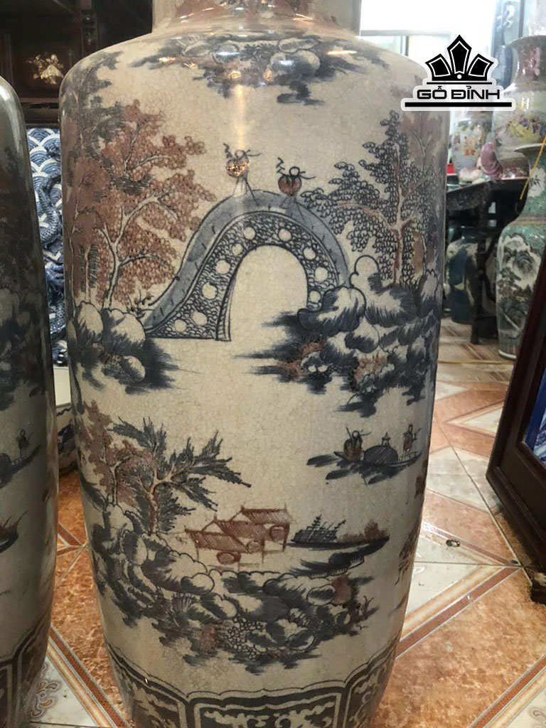 Đôi Bình Men Rạn Vẽ Sơn Thủy Cao 102 (cm)