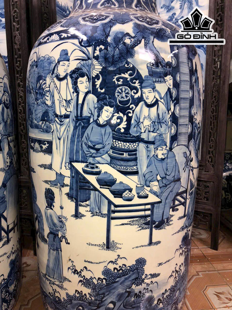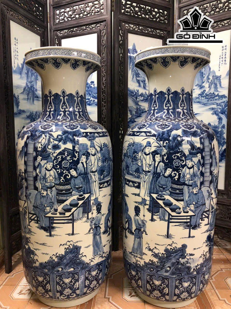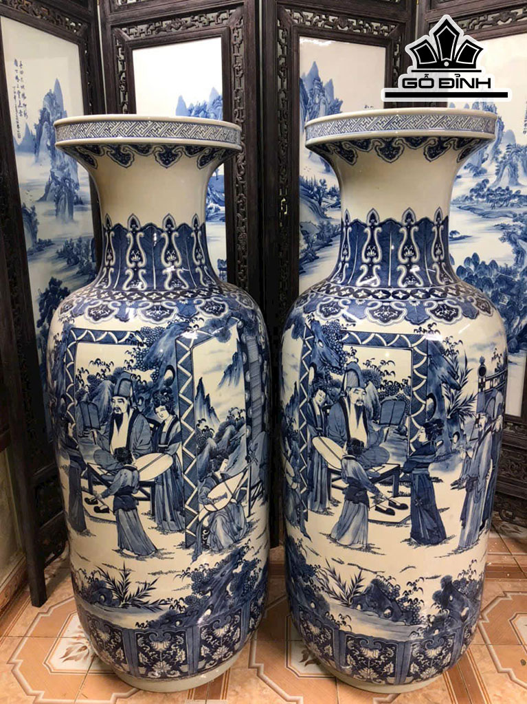 Đôi Bình Vẽ Tràm Vinh Quy Bái Tổ Gốm Giang Tô Cao 127 Đường Kính Bụng 160 (cm)