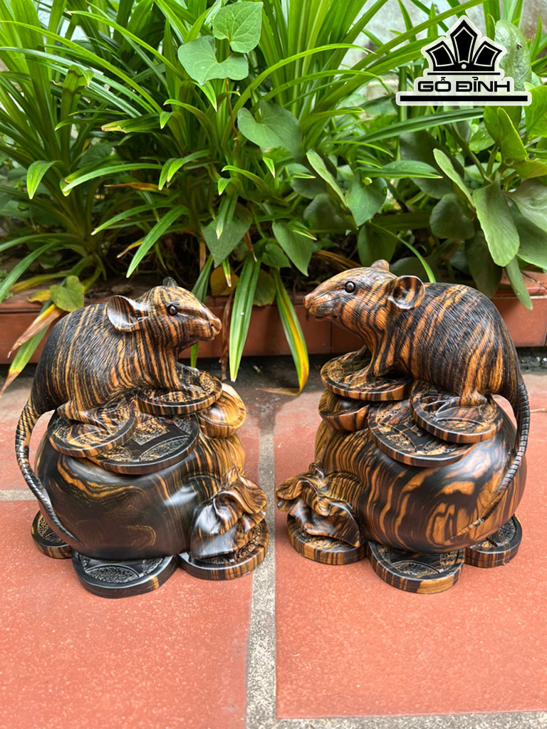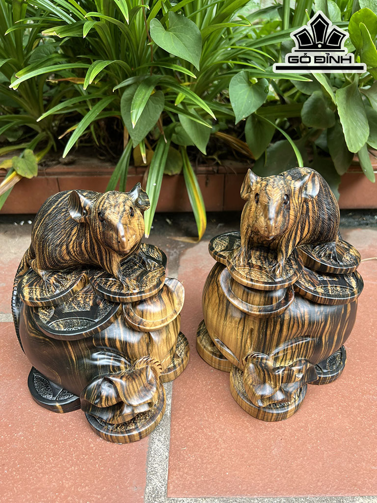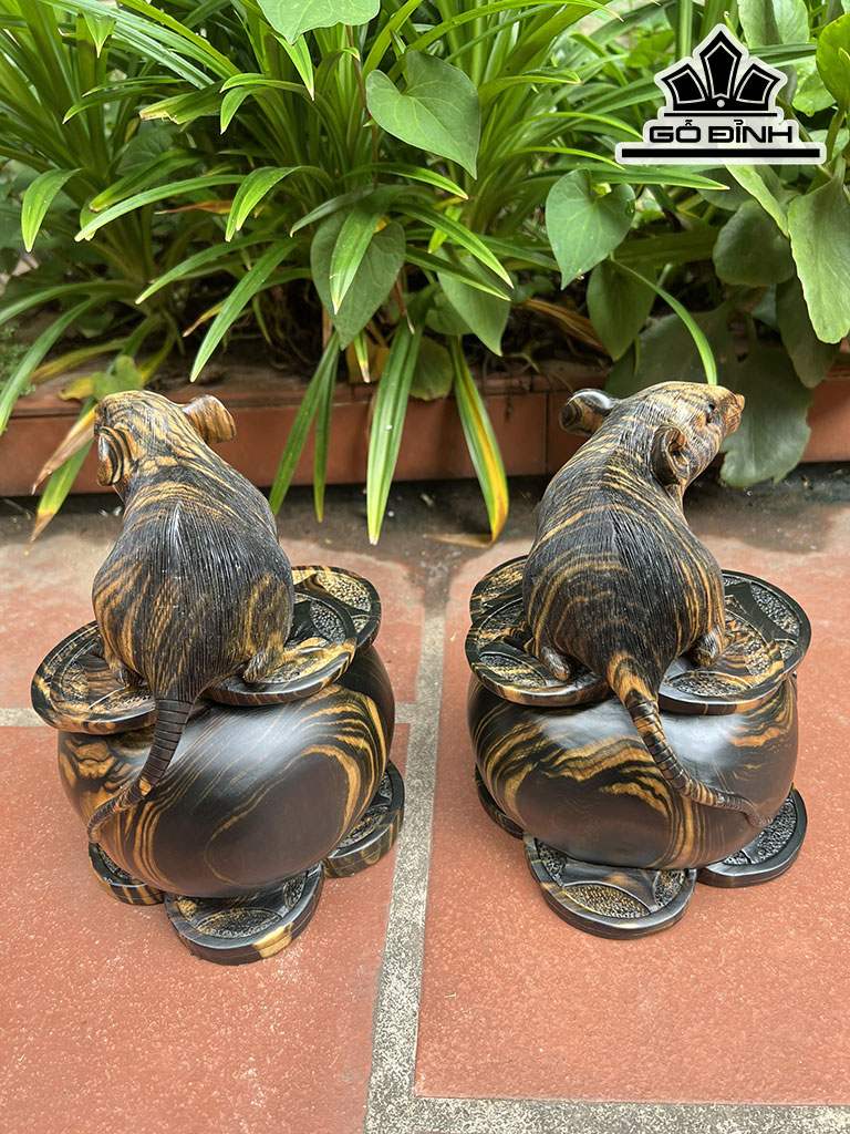 Đôi Chuột Gỗ Mun Hoa Cao 20 Ngang 18 Sâu 15 (cm)