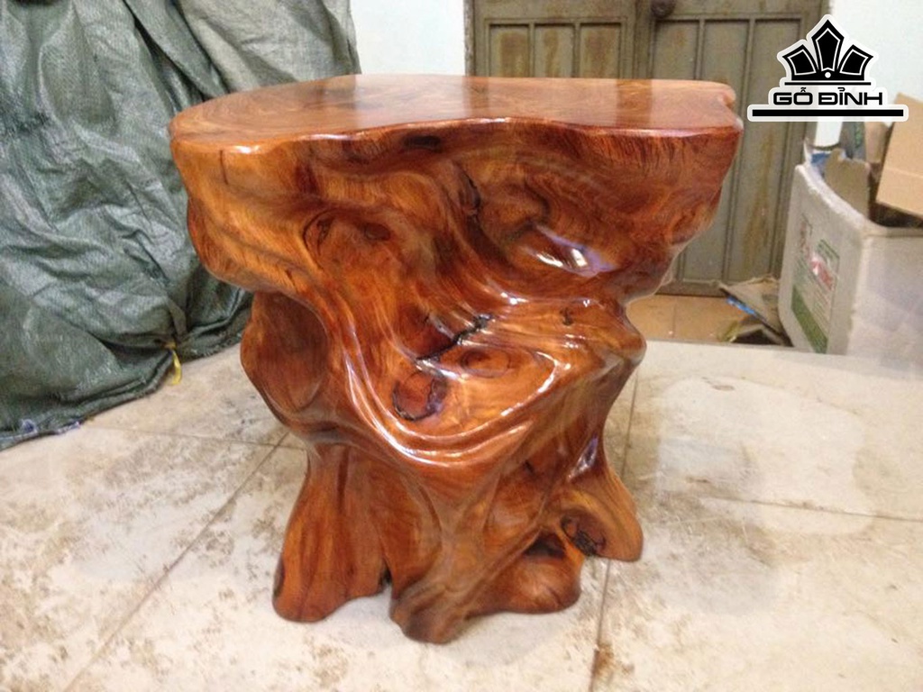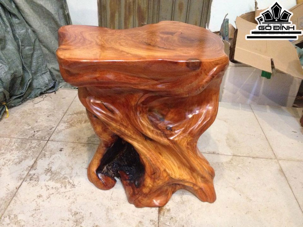 Đôn Gỗ, Đôn Gốc Cây Gỗ Gõ Đỏ (Cà te) Cao 42 Mặt 41-35 (cm) DC1017