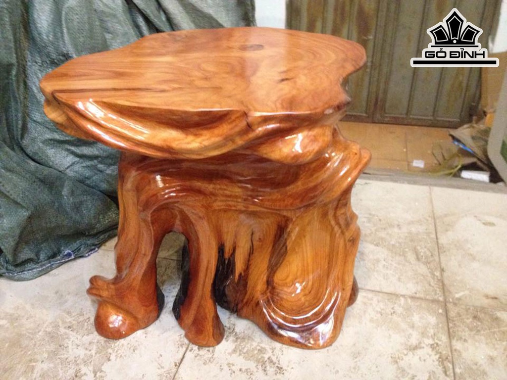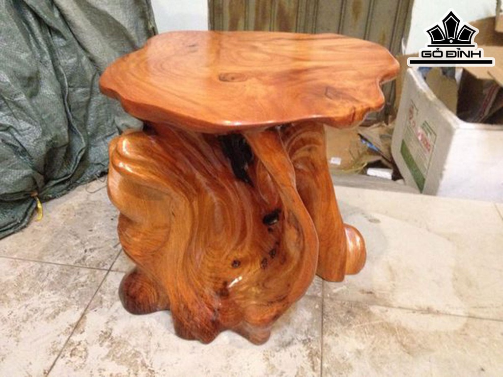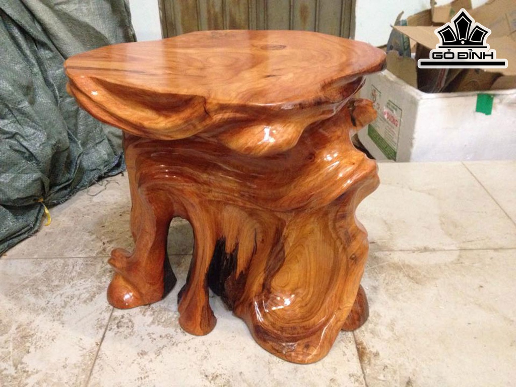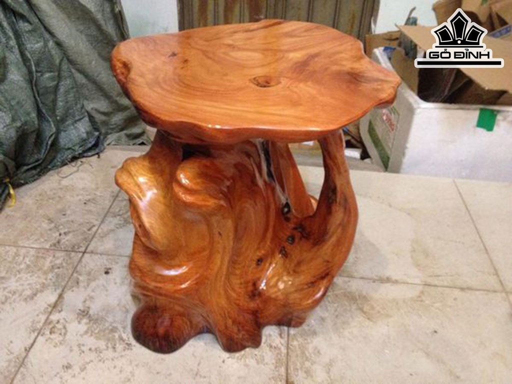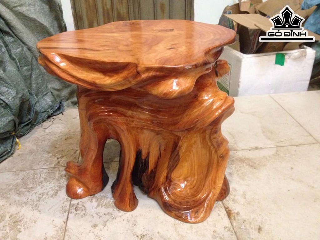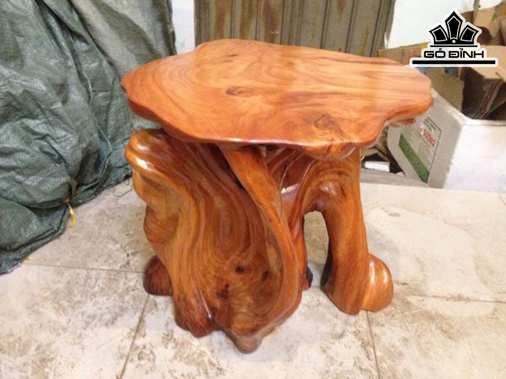 Đôn Gỗ, Đôn Gốc Cây Gỗ Gõ Đỏ (Cà te) Cao 42 Mặt 44-40 (cm) DC1016