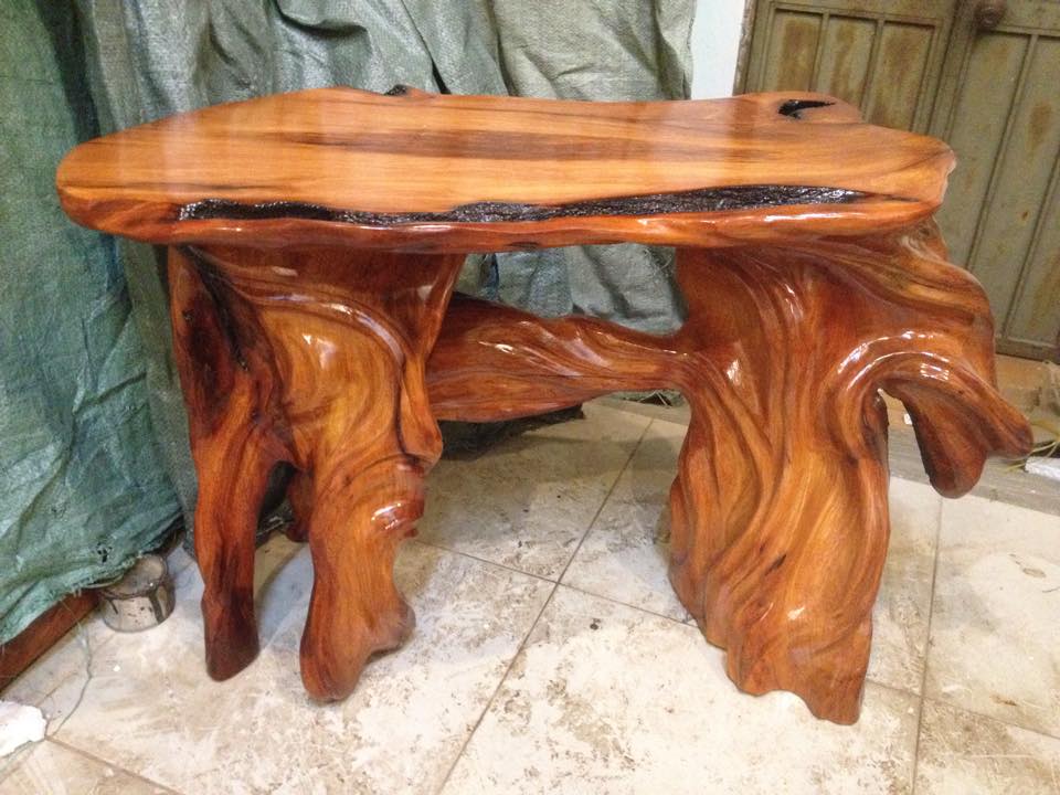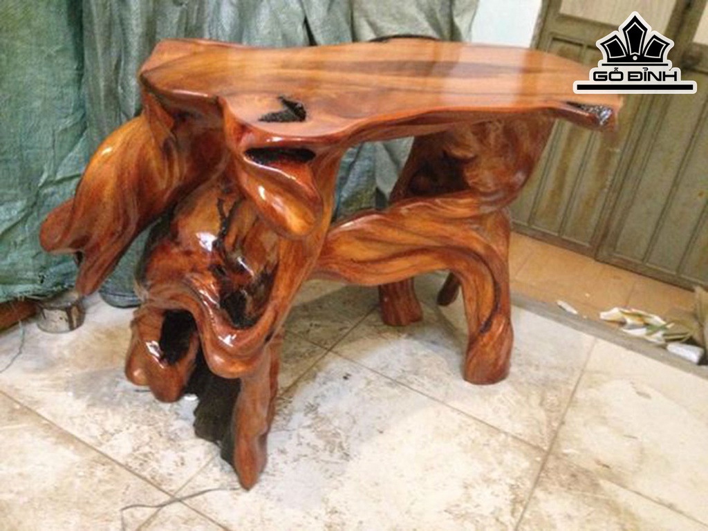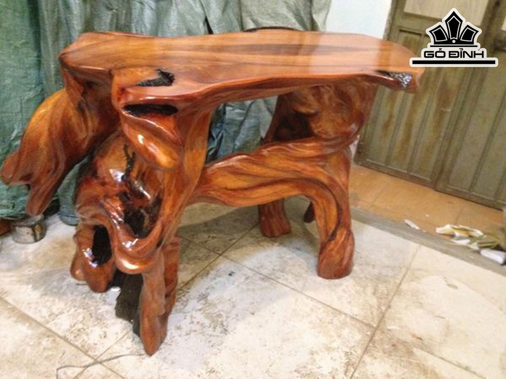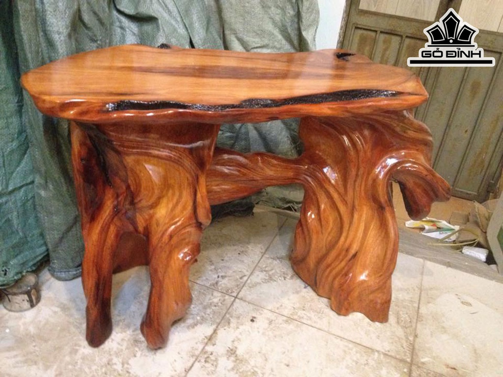 Đôn Gỗ, Đôn Gốc Cây Gỗ Gõ Đỏ (Cà te) Cao 52 Mặt 78-40 (cm) DC153