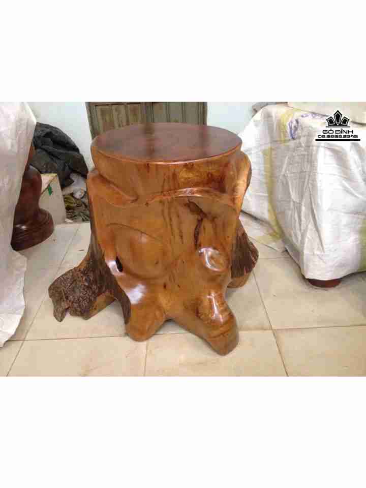 Đôn Gỗ, Đôn Gốc Cây Nguyên khối Gỗ Dổi Vàng Cao 58 Ngang 70 Sâu 68 Mặt 44-37 (cm)