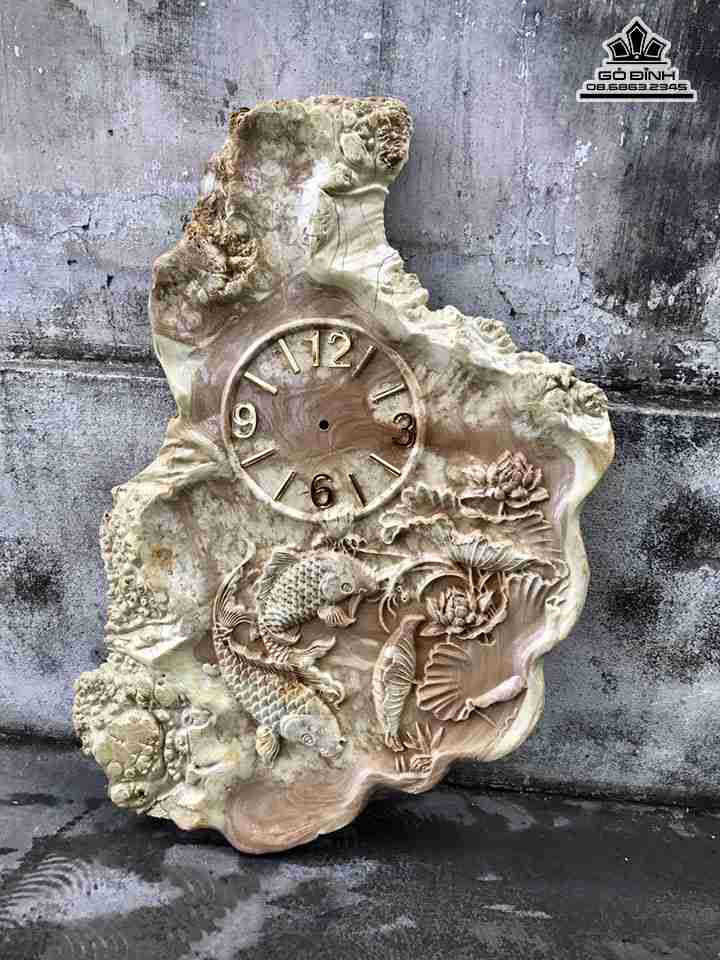 Đồng hồ cá chép gỗ nu nghiến cao 67 rộng 48 dày 2.5 (cm)