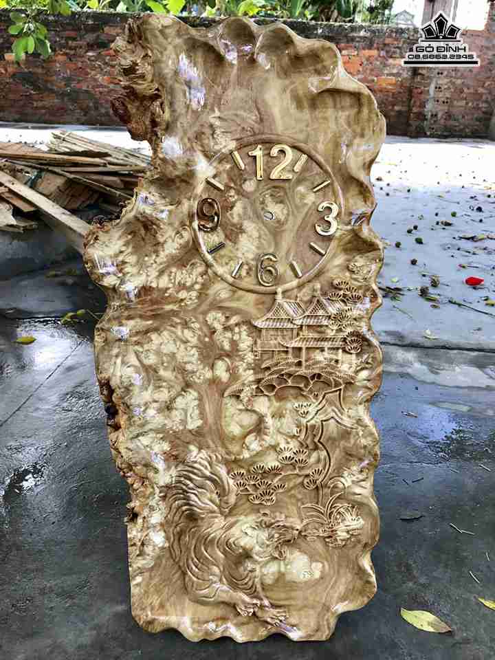Đồng hồ Hổ xuống núi gỗ nu nghiến cao 66,5 rộng 30 dày2.5cm