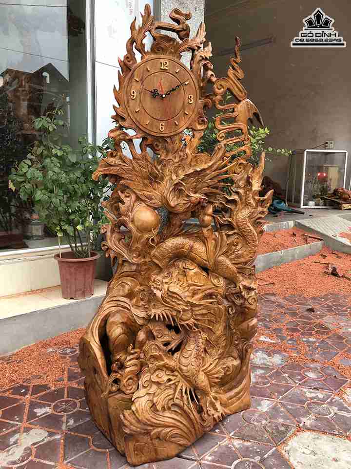 Đồng Hồ Long Phụng Sum Vầy Gỗ Hương Việt Cao 127 Ngang 57 Sâu 32 (cm)