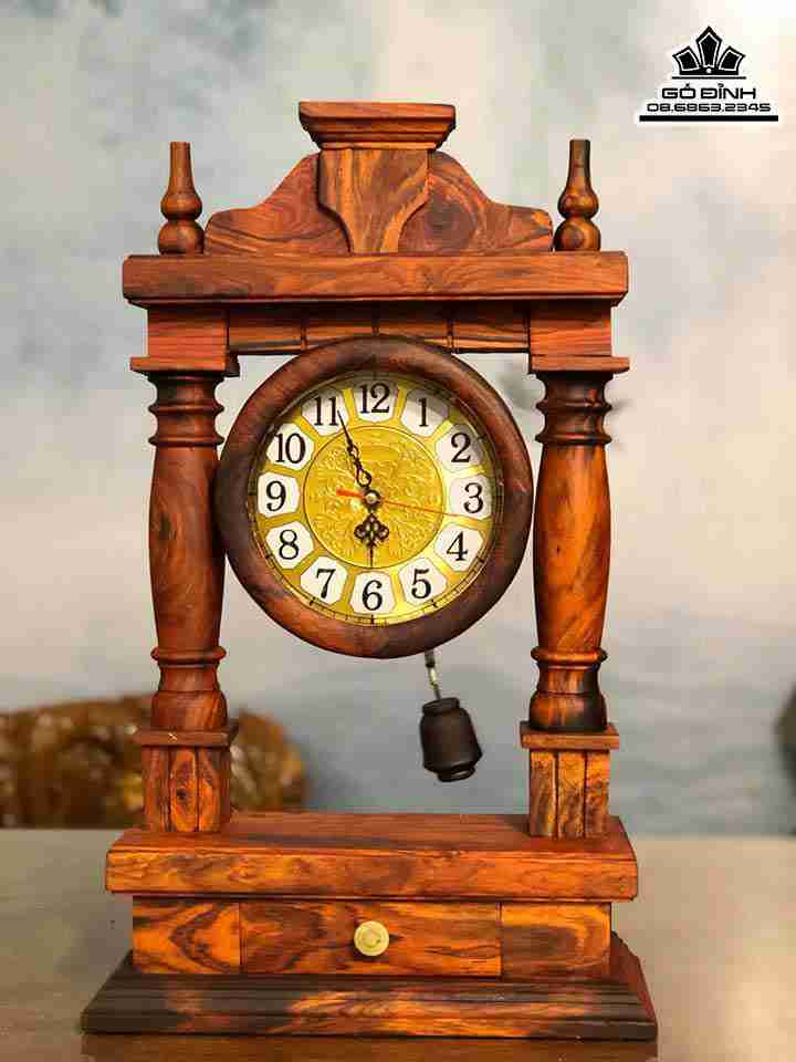Đồng Hồ Quả Lắc Để Bàn Gỗ Trắc