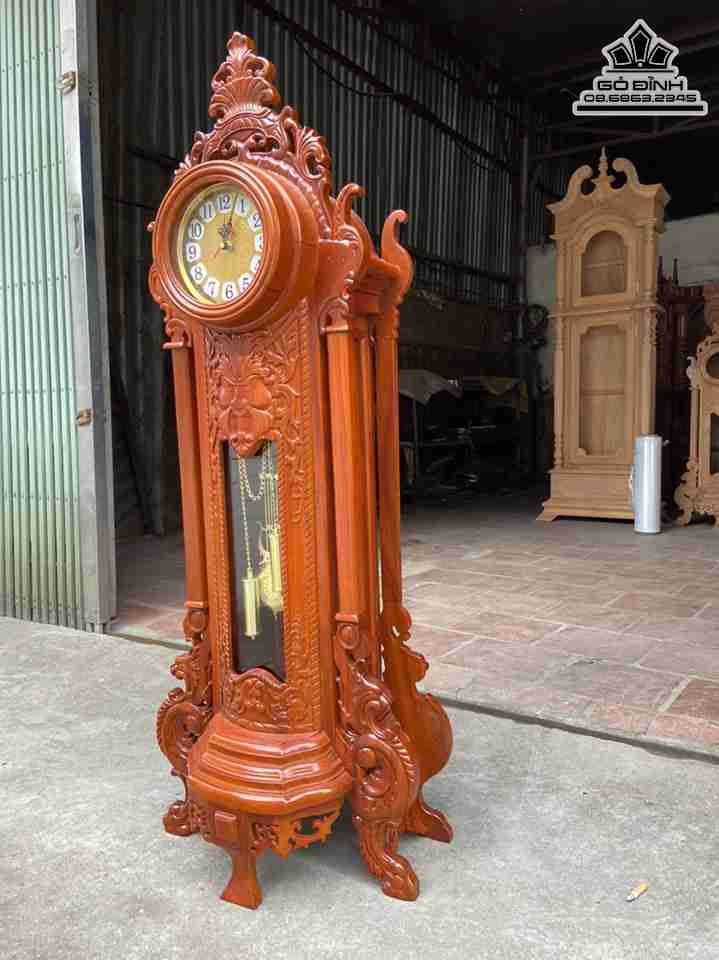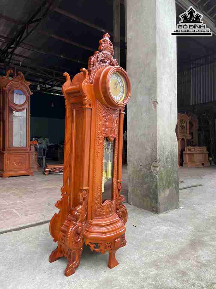 Đồng Hồ Quả Lắc Gỗ Gõ Đỏ ( Cate ) Cao 120 Rộng 45 Sâu 25 (cm)