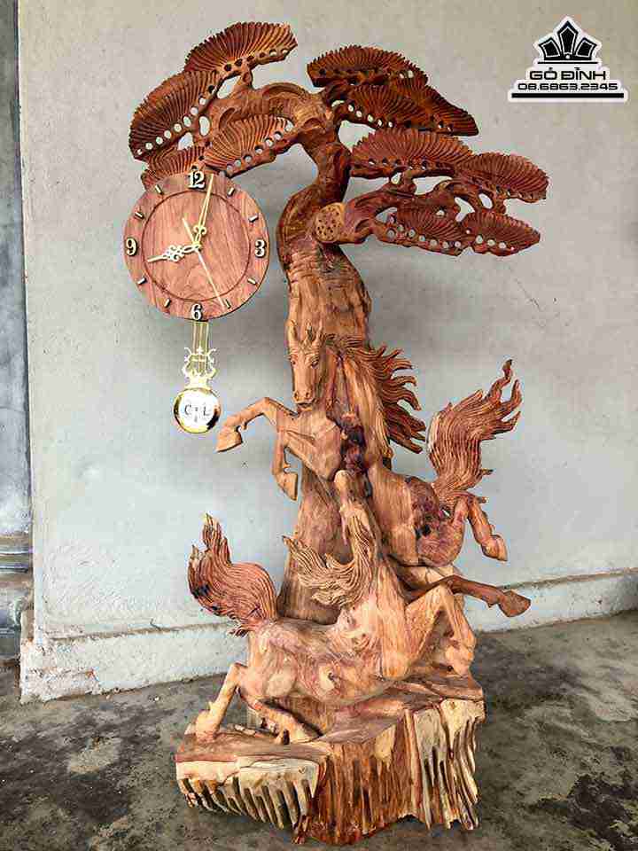 Đồng Hồ Song Mã Gỗ Hương Cao 107 Rộng 60 Dày 29 (cm)