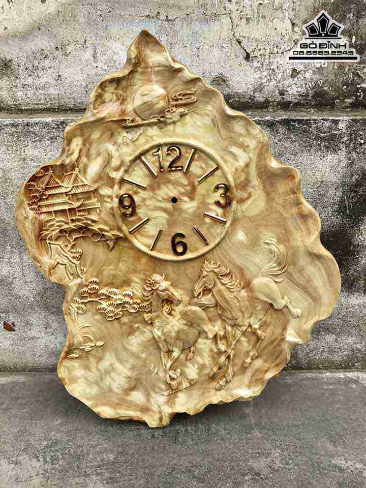 Đồng Hồ Song Mã Gỗ Nu Nghiến Cao 57 Rộng 42 Dày 2 (cm)