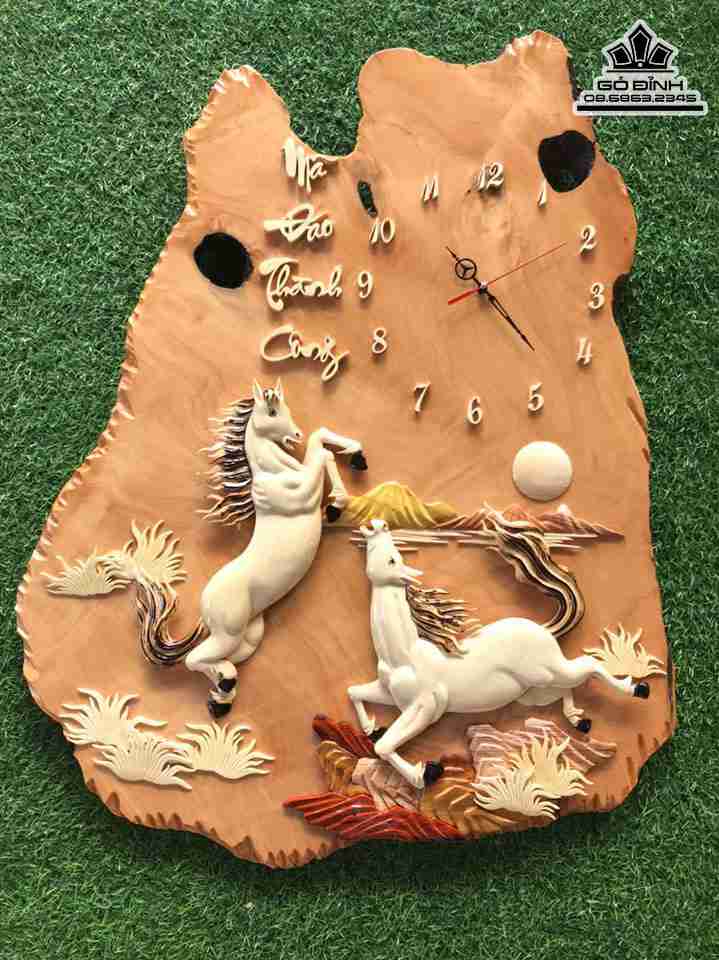 Đồng Hồ Song Mã Gỗ Trai Cao 80 Rộng 65 (cm)
