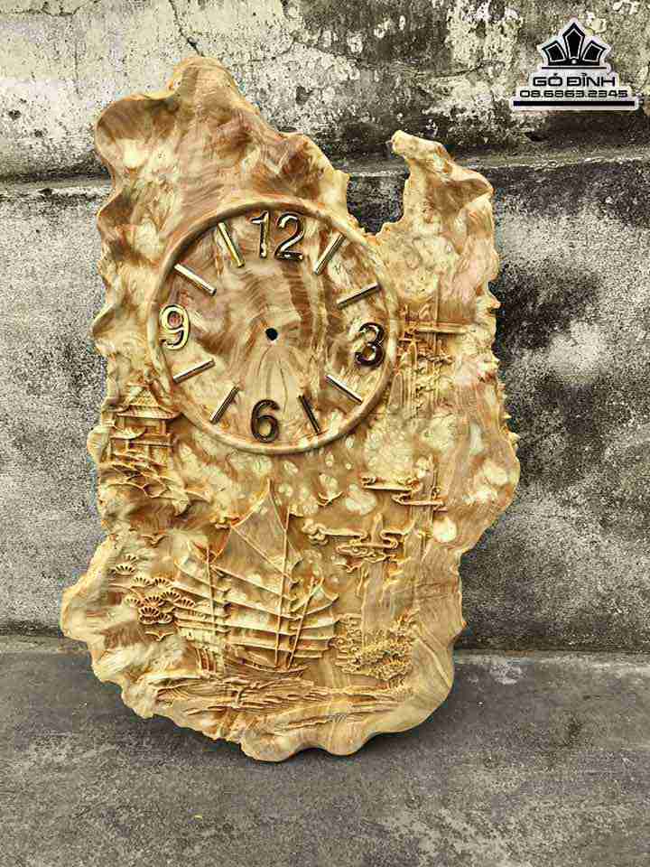 Đồng Hồ Thuận Buồm Xuôi Gió Gỗ Nu NGhiến Cao 56 Rộng 33 Dày 2.2 (cm)