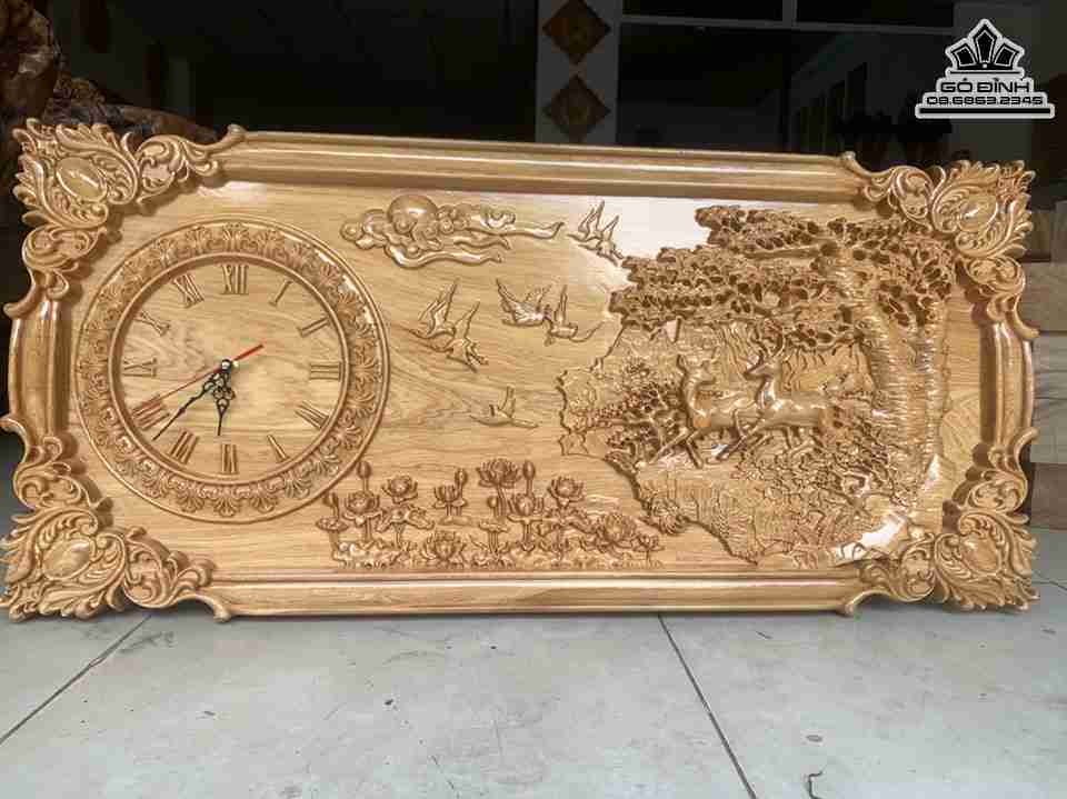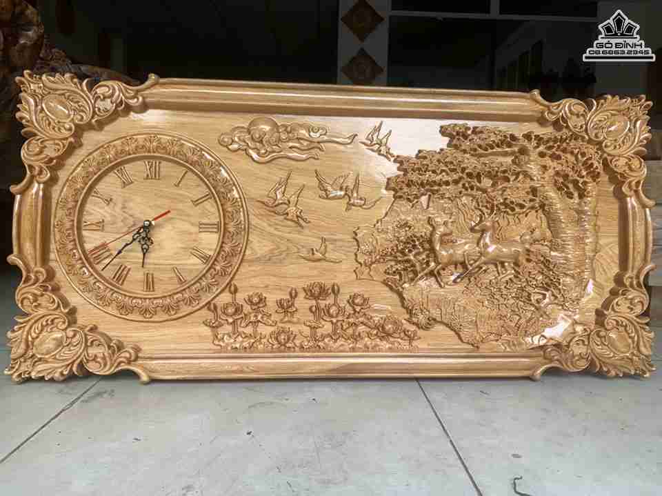 Đồng Hồ Treo Tường Hai Con Nai Gỗ Pơ Mu Dài 100 Rộng 50 dày 4 (cm)