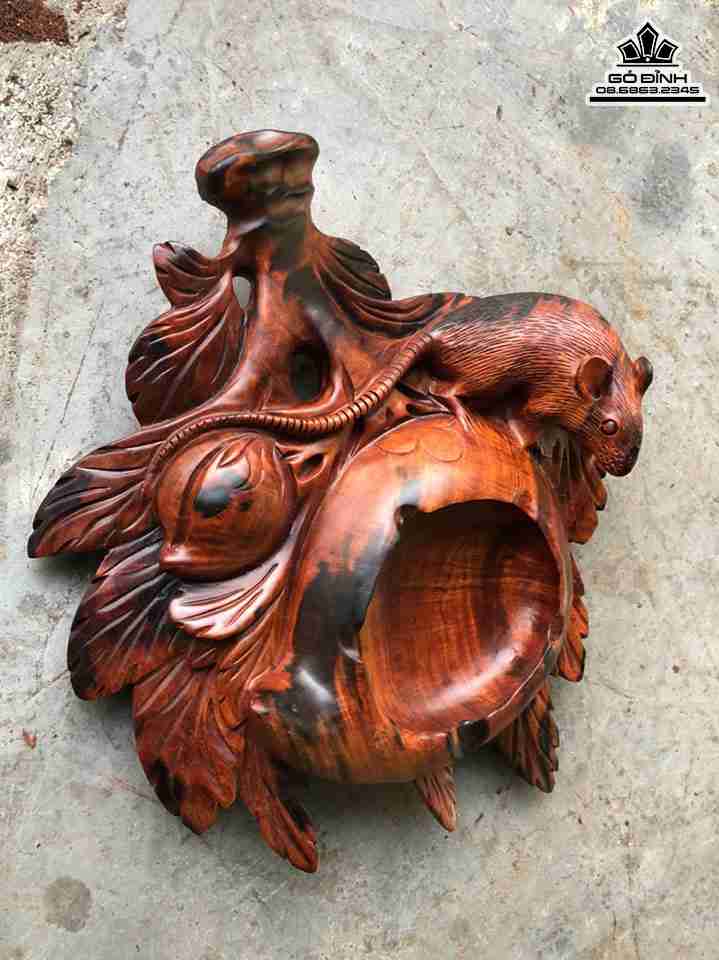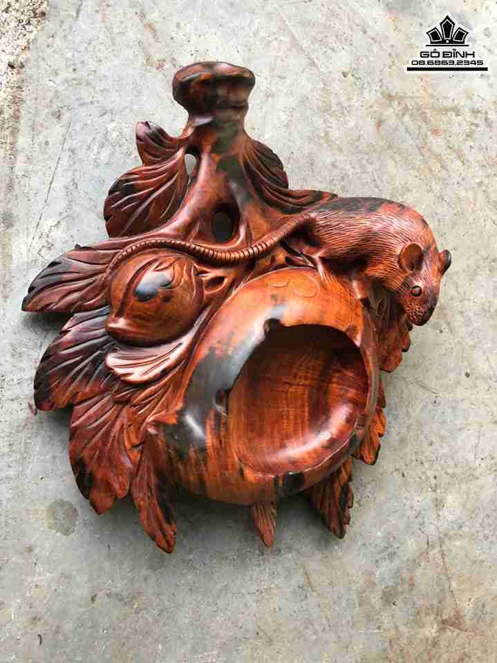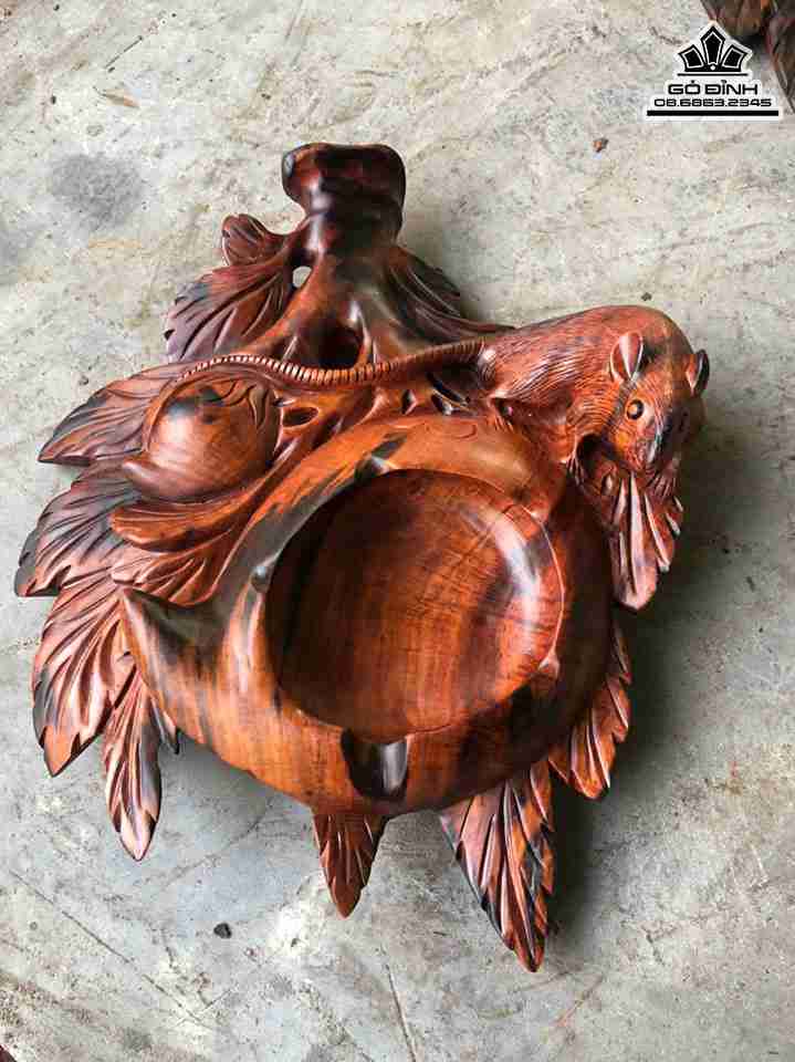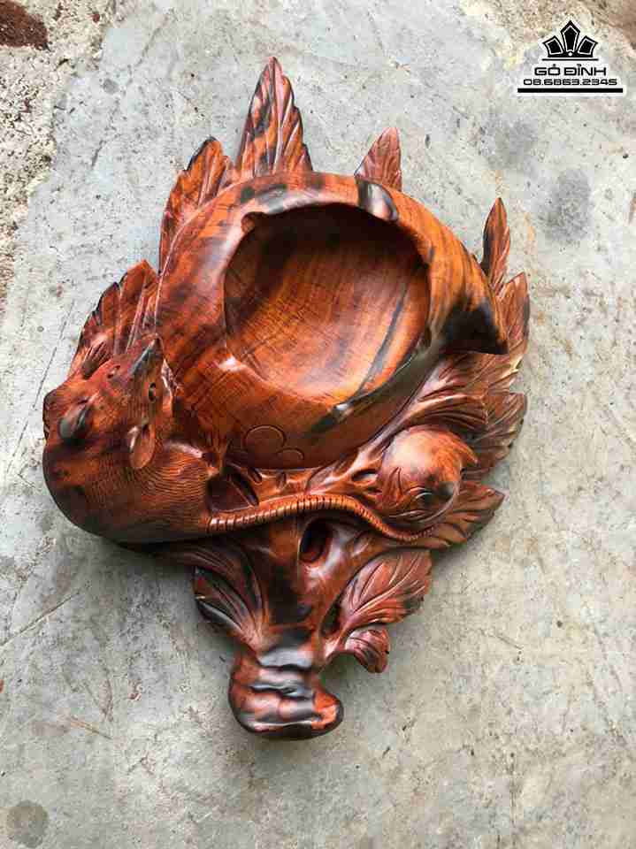 Gạt Tàn Thuốc Hình Quả Đào Gỗ Trắc Cao 7 Ngang 28 Sâu 23 (cm)