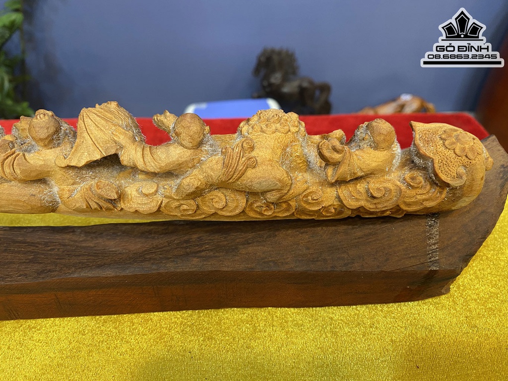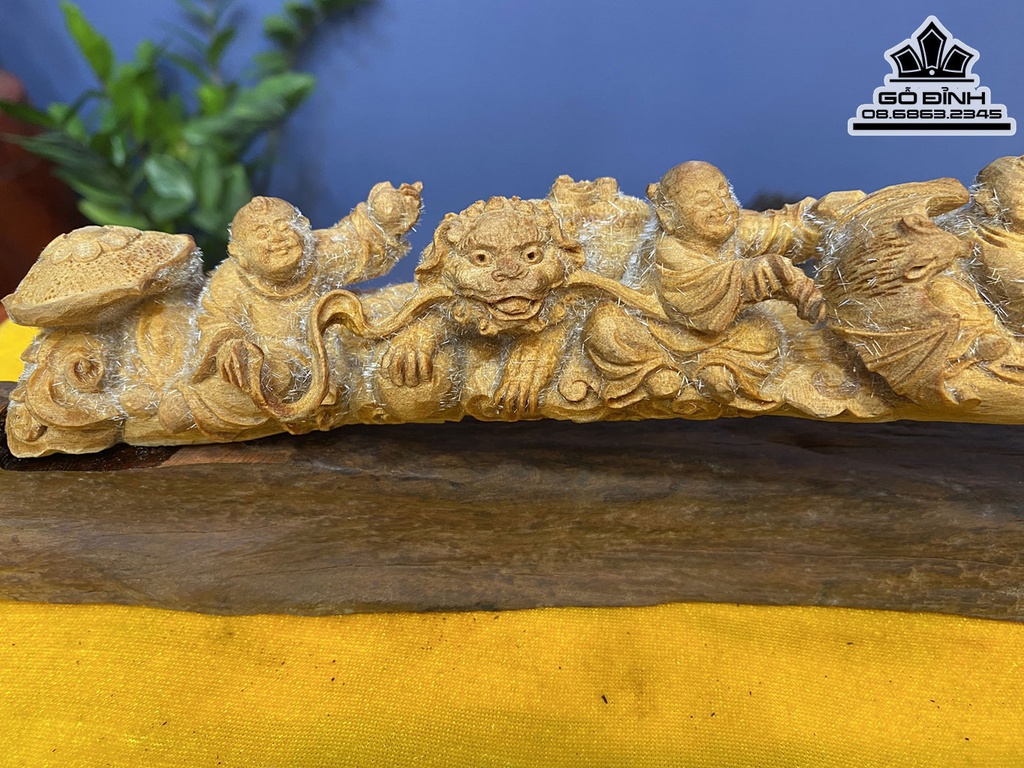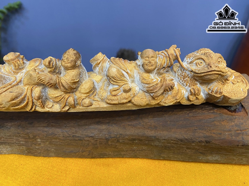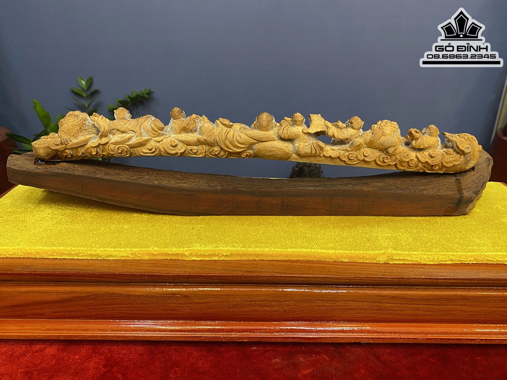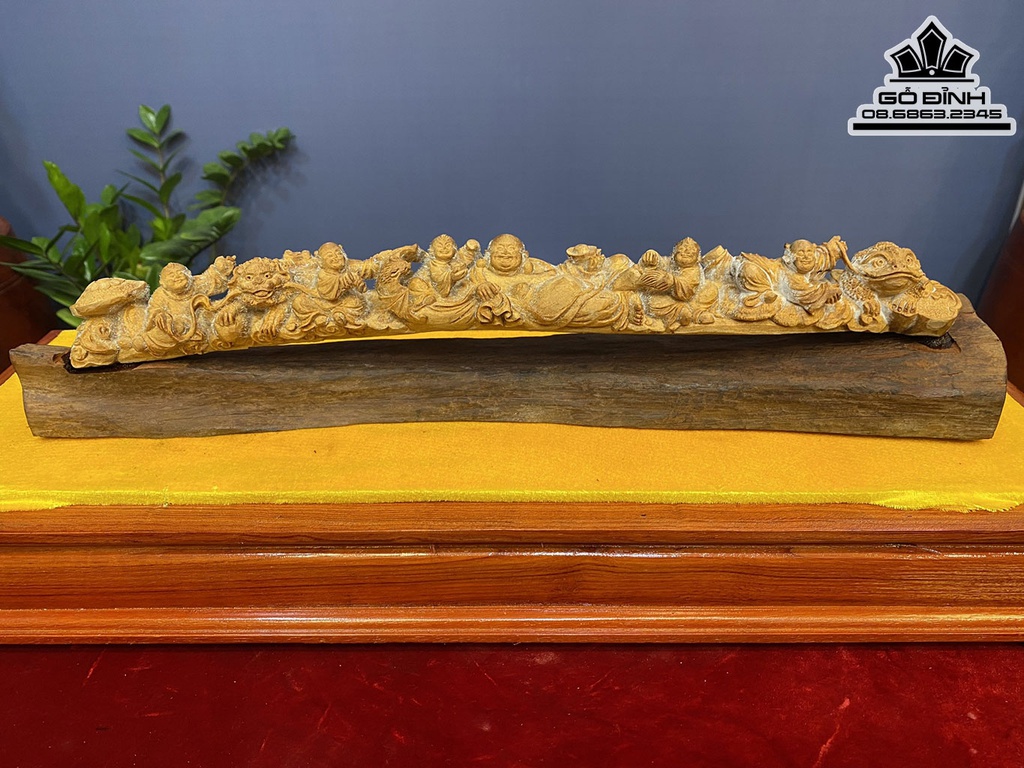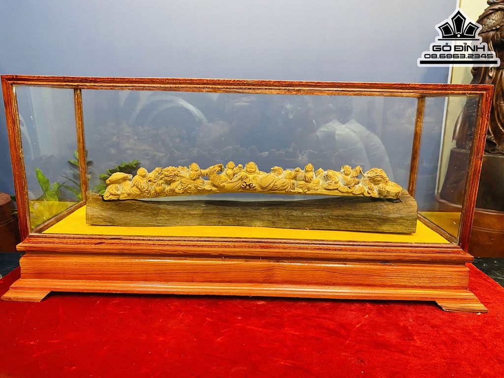 Gậy Như Ý Phật Di Lặc Ngũ Phúc Gỗ Hoàng Đàn Cao 10 Ngang 45 Sâu 7 Cao Cả Tủ Kính 27 Ngang 60 Sâu 19 (cm)