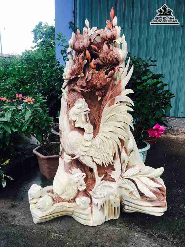 Gia đình gà gỗ hương cao 105 rộng 72 dày 37 (cm)