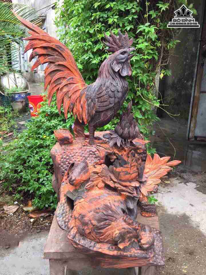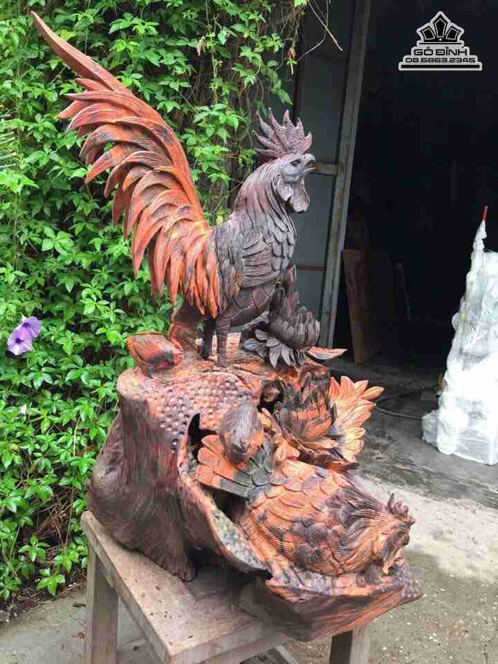 Gia đình gà gỗ trắc đỏ đen cao 60 rộng 40 dày 40 (cm)