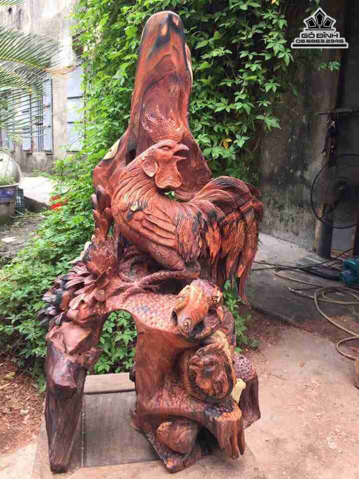 Gia đình gà gỗ trắc đỏ đen cao 62 rộng 40 dày 25 (cm)