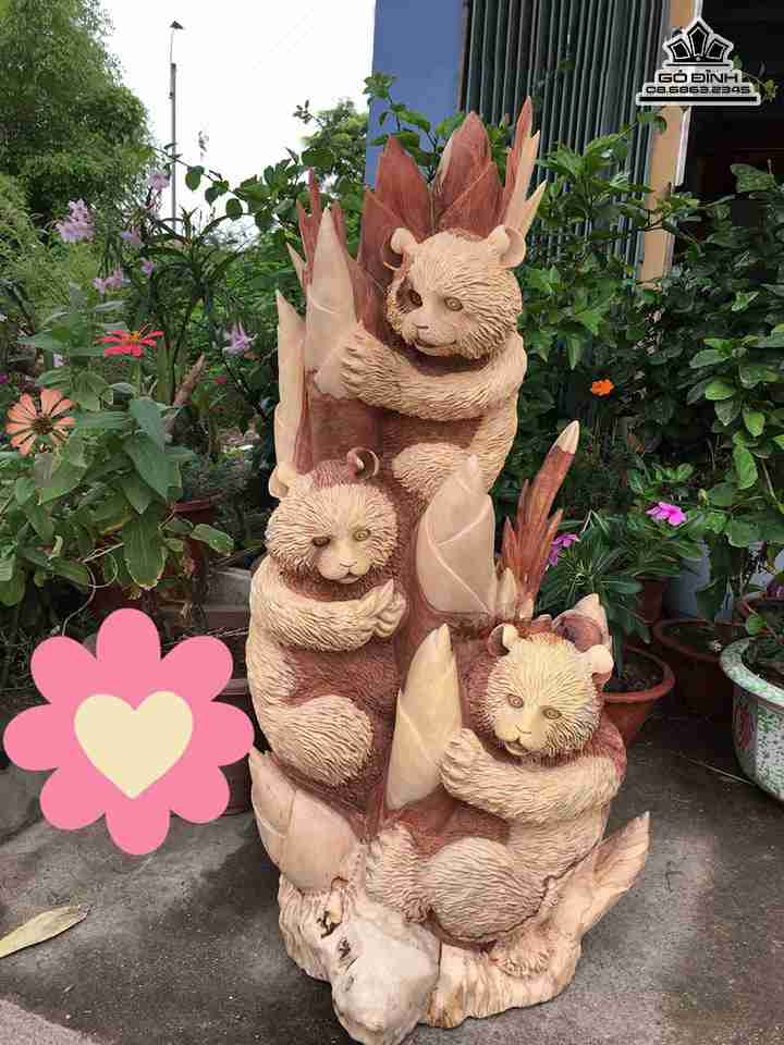 Gia đình gấu trúc gỗ hương cao 80 rộng 38 dày 35 (cm)
