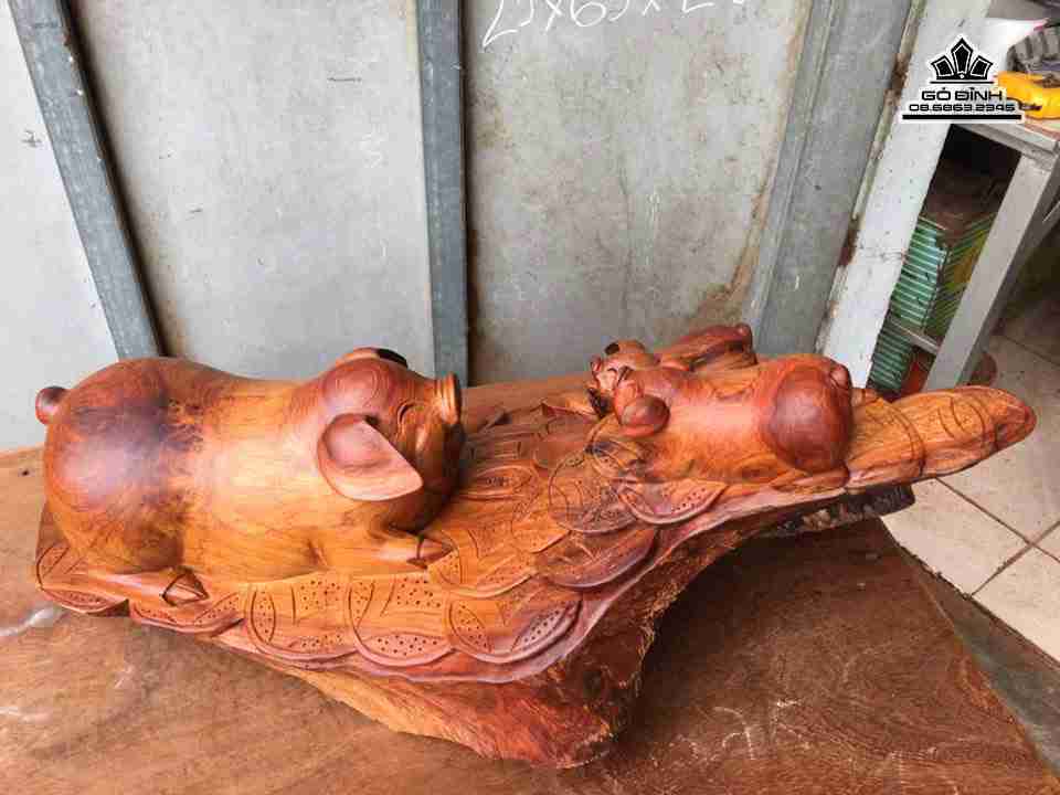 Gia đình nhà lợn gỗ hương cao 25 rộng 65 sâu 28 (cm)