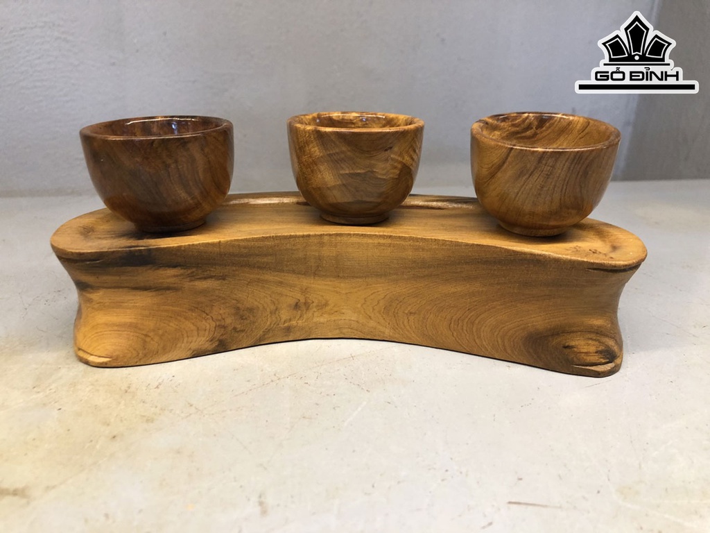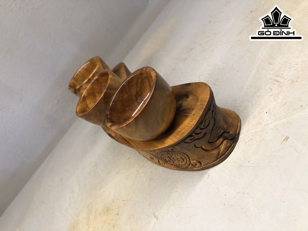 Giá Phúc Lộc Thọ Để Bàn Thờ Gỗ Bách Xanh Cao 4 Ngang 20 Sâu 5 Chén Đường Kính 5 Dày 3,5 (cm)
