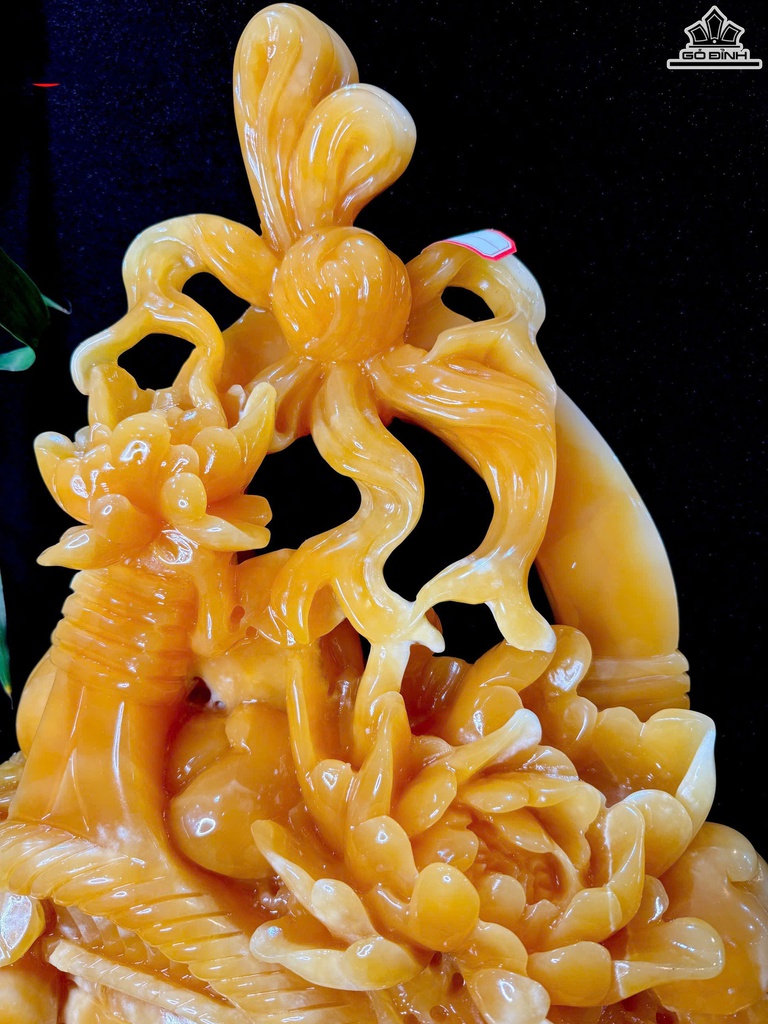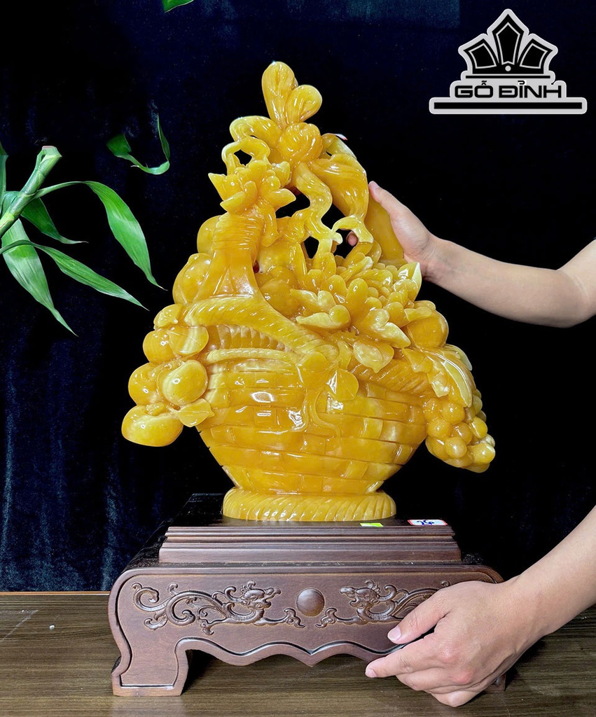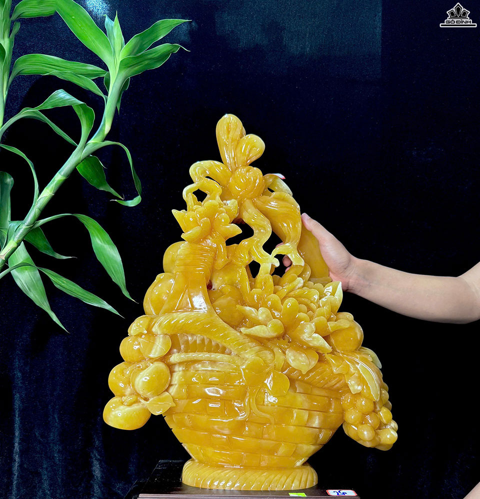 Giỏ Hoa Khai Phú Quý Đá Ngọc Hoàng Long Cao Cả Đế 71 - Riêng Giỏ Cao 54 Ngang 43 Sâu 13 (cm)