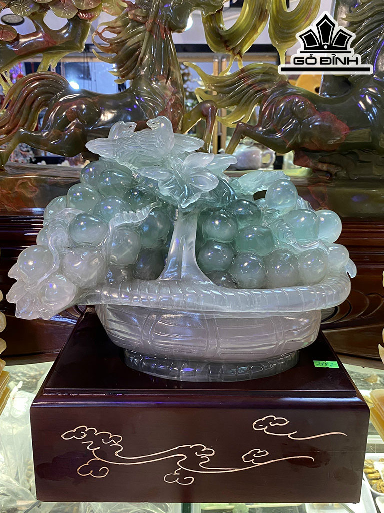 Giỏ Nho Tài Lộc Phú Quý Đá Flourite Cao 30 Ngang 30 Sâu 21 (cm)