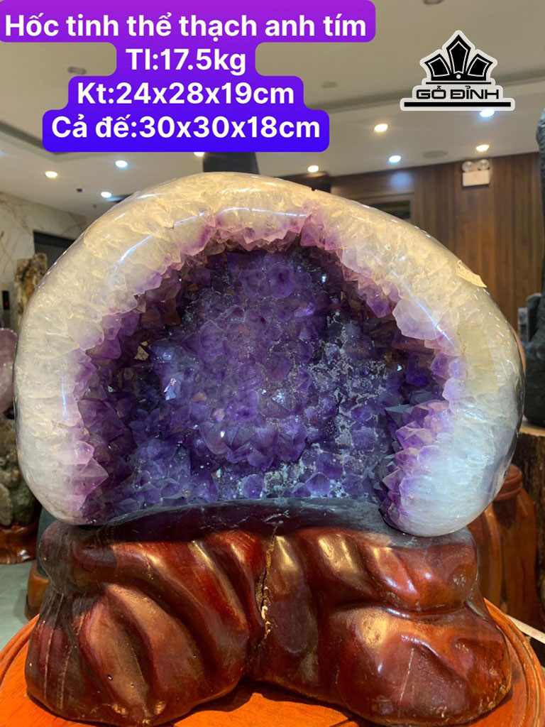 Hốc Tinh Thể Đá Thạch Anh Tím Cao 30 Ngang 30 Sâu 18 Riêng Đá Cao 24 Ngang 28 Sâu 19 (cm)