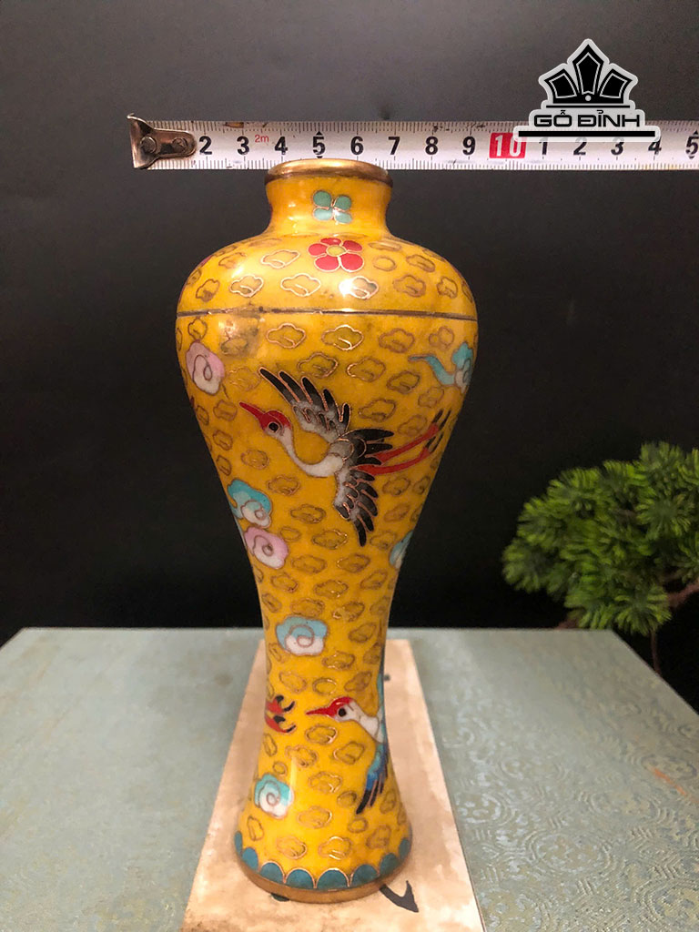 Hộp Bình Đồng Pháp Lam Cây Tài Lộc Mix Đá Thấu Quang Cao 19 Ngang 10 (cm)