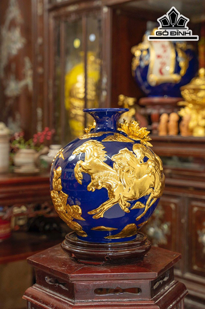 Hút Lộc Mã Đáo Thành Công Dát Vàng Gốm Bát Tràng Cao 28 Phi 25 (cm)