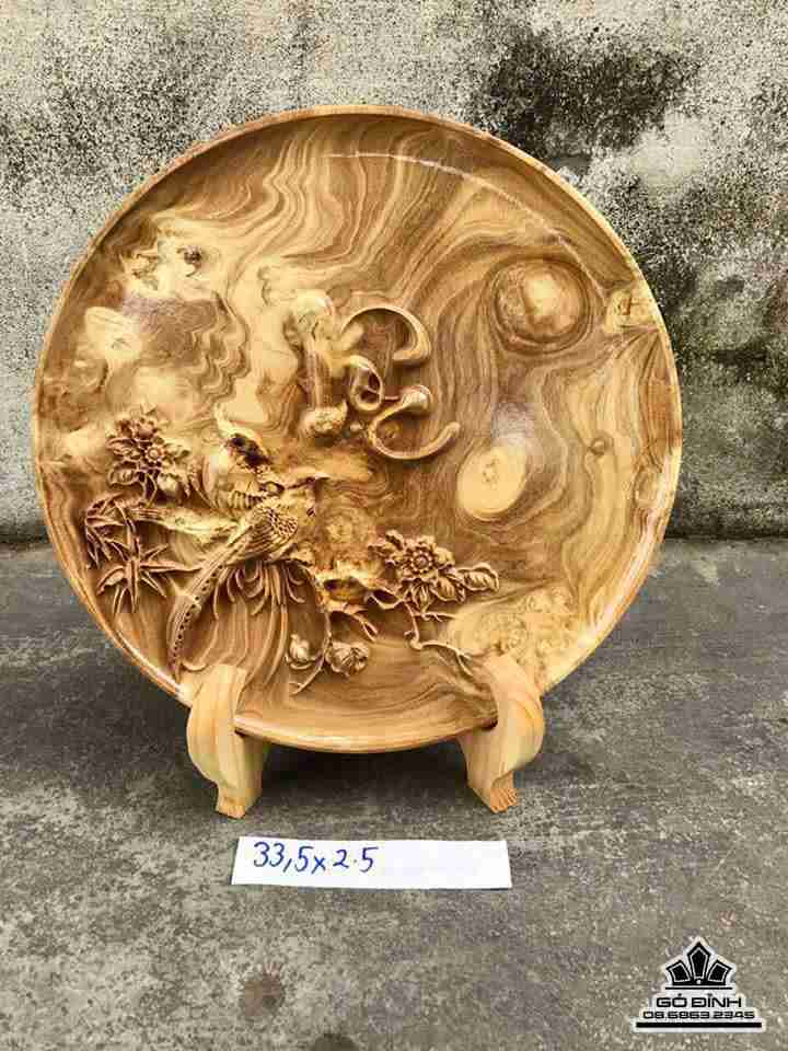 Đĩa chữ lộc gỗ nu nghiến 33.5x2.5