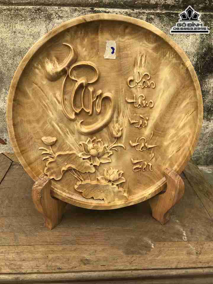 Đĩa Chữ Tâm Gỗ Nu Nghiến Đường Kính 29 Dày 2 (cm)