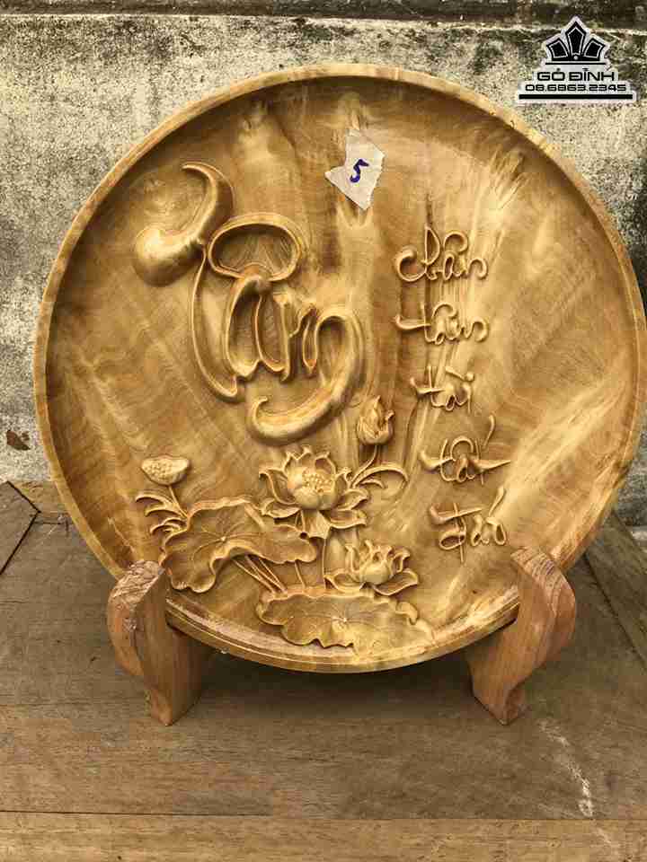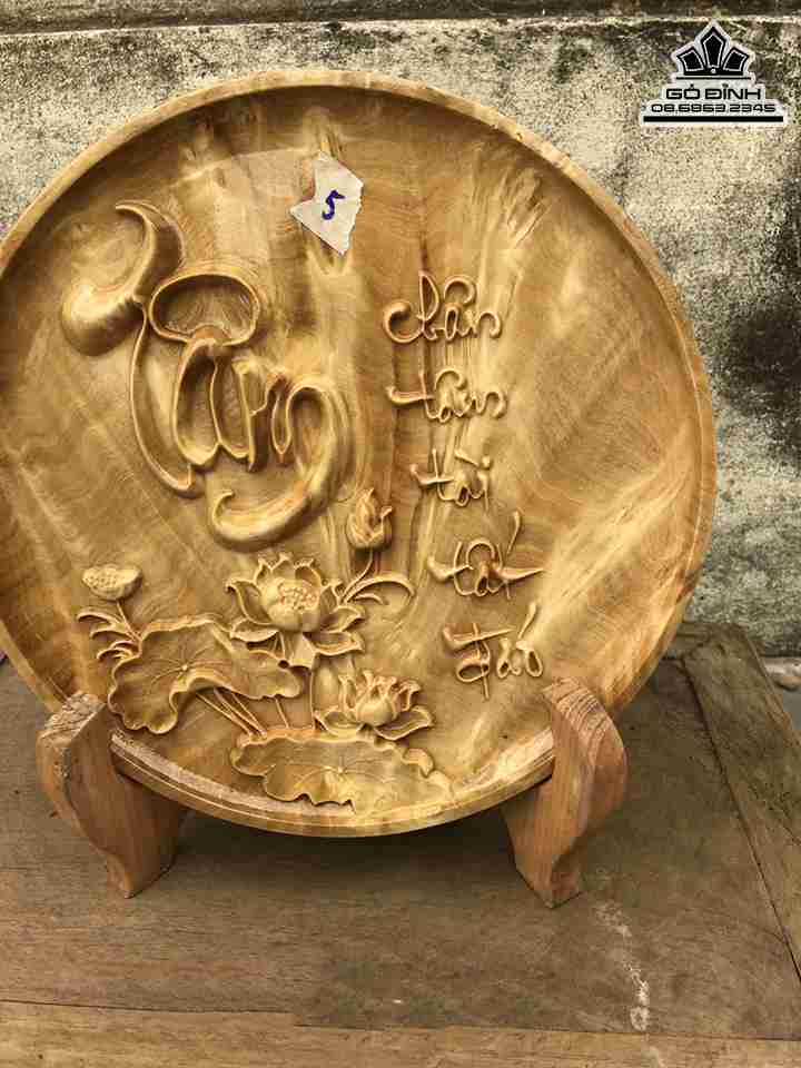 Đĩa Chữ Tâm Gỗ Nu Nghiến Đường Kính 28 Dày 2 (cm)