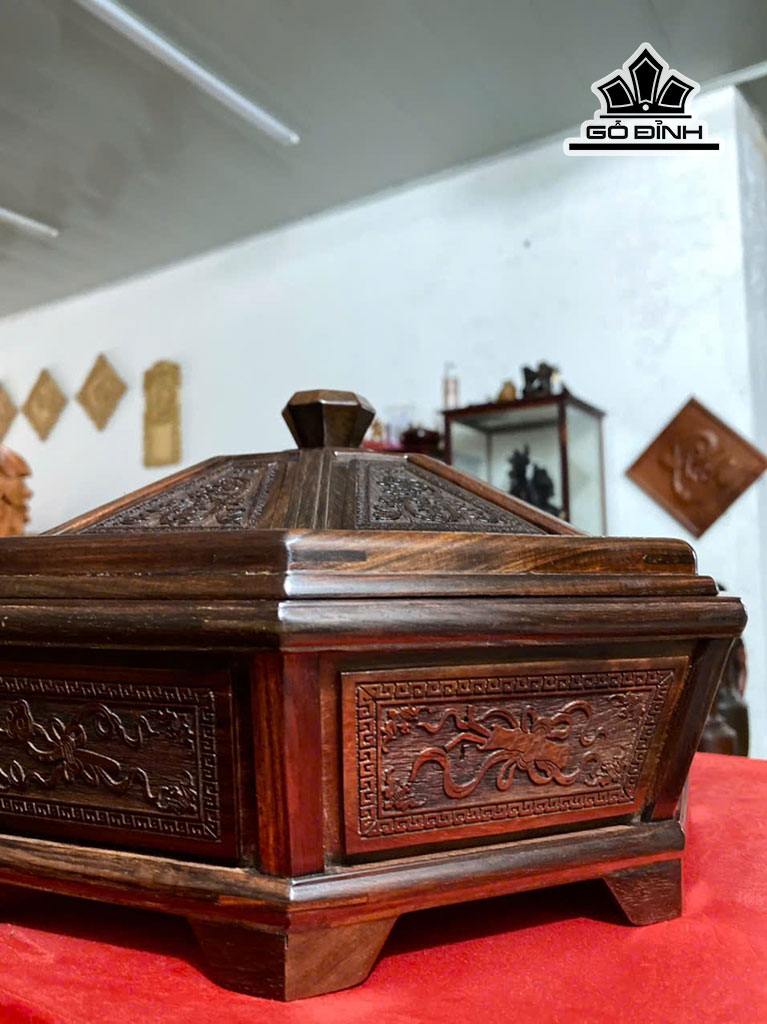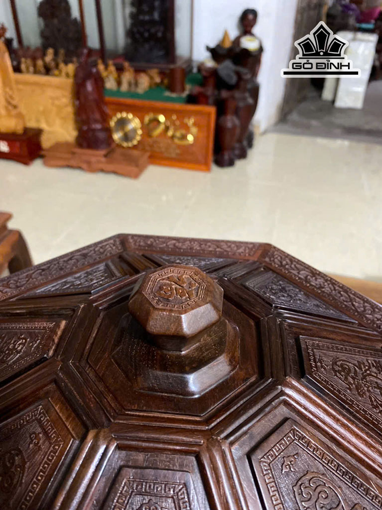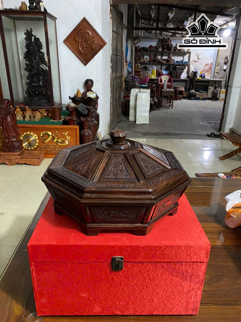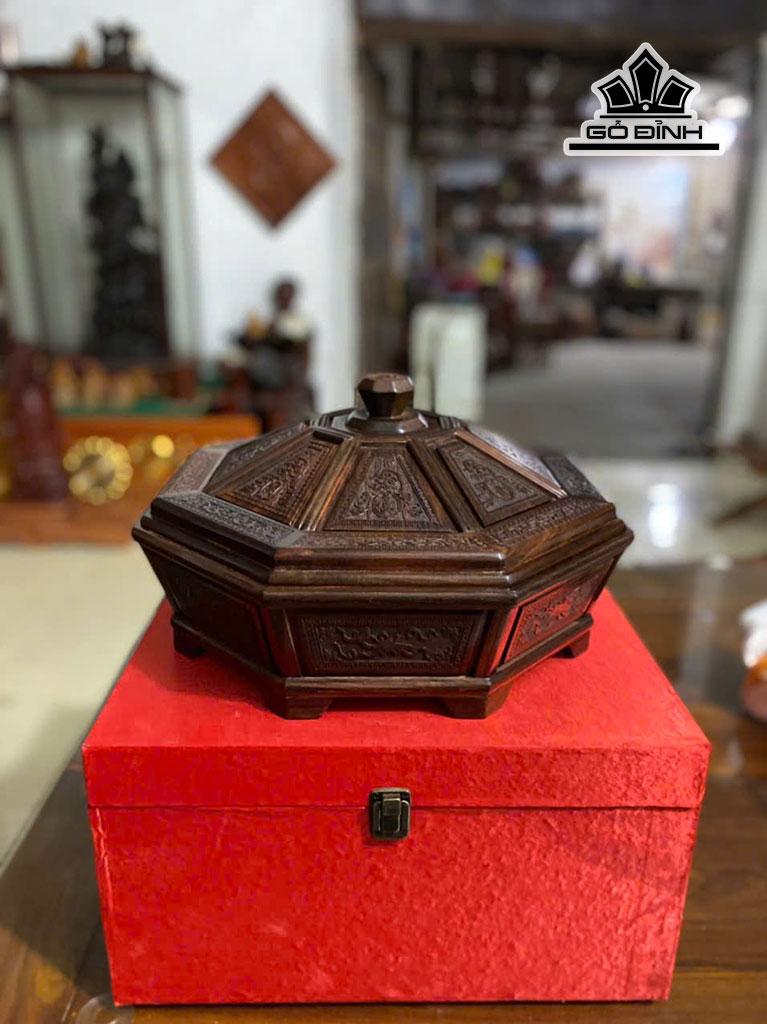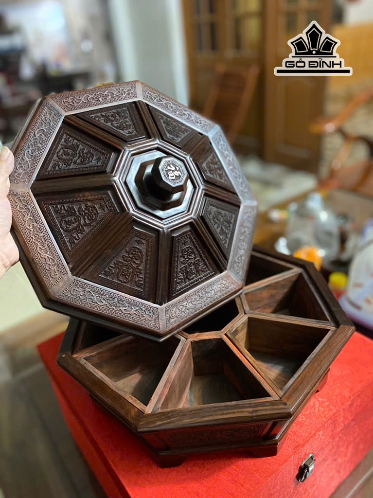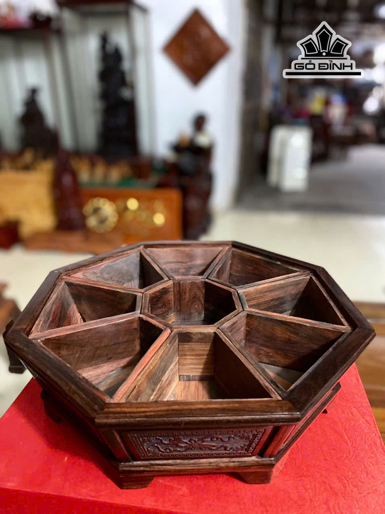 Khay Bánh Kẹo 9 Ngăn Gỗ Trắc Cao 20 Đường Kính 37 (cm)