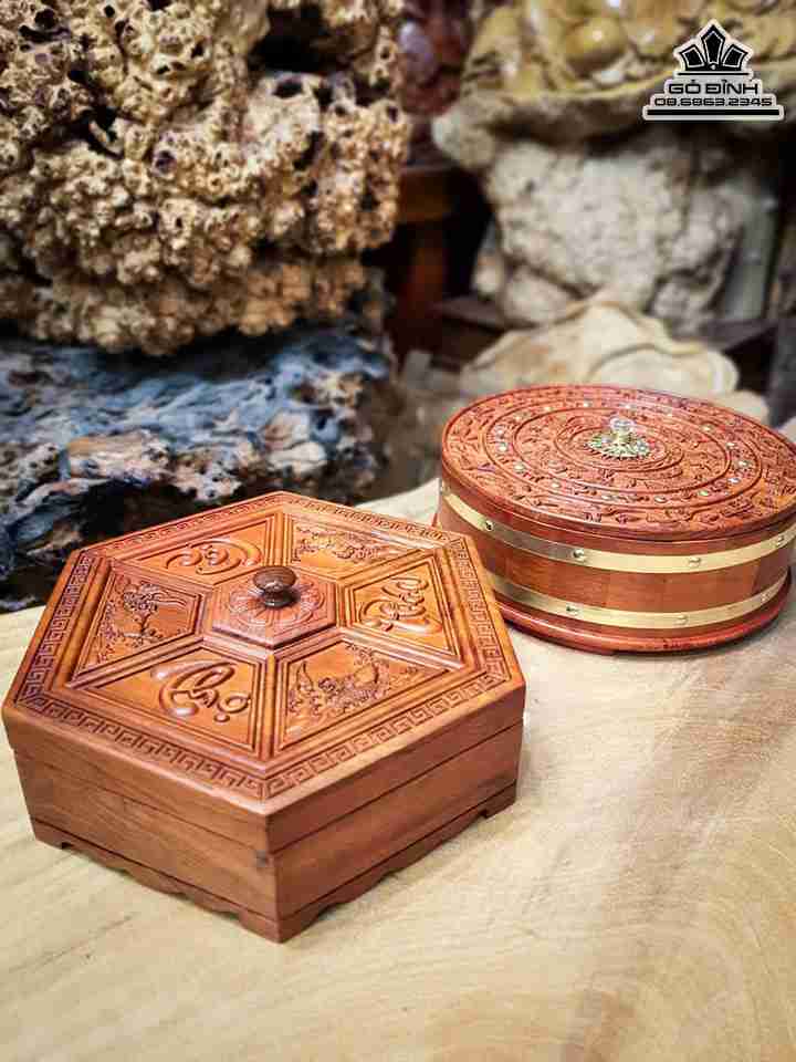 Khay Đựng Bánh Kẹo Phúc Lộc Thọ Gỗ Hương