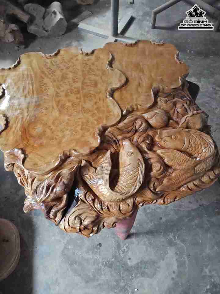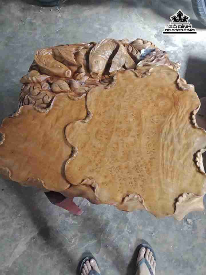 Khay trà cá chép gỗ nu xá xị dài 75 rộng 75 dày 10 (cm)