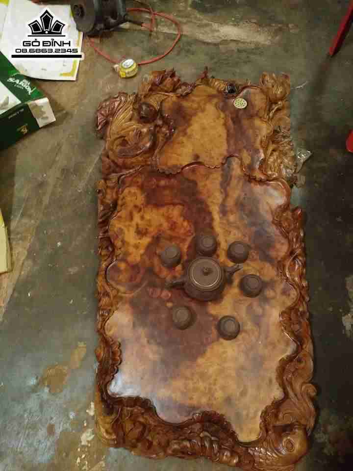 Khay trà cá chép gỗ nu xá xị thơm nức mũi 1m10x56x10