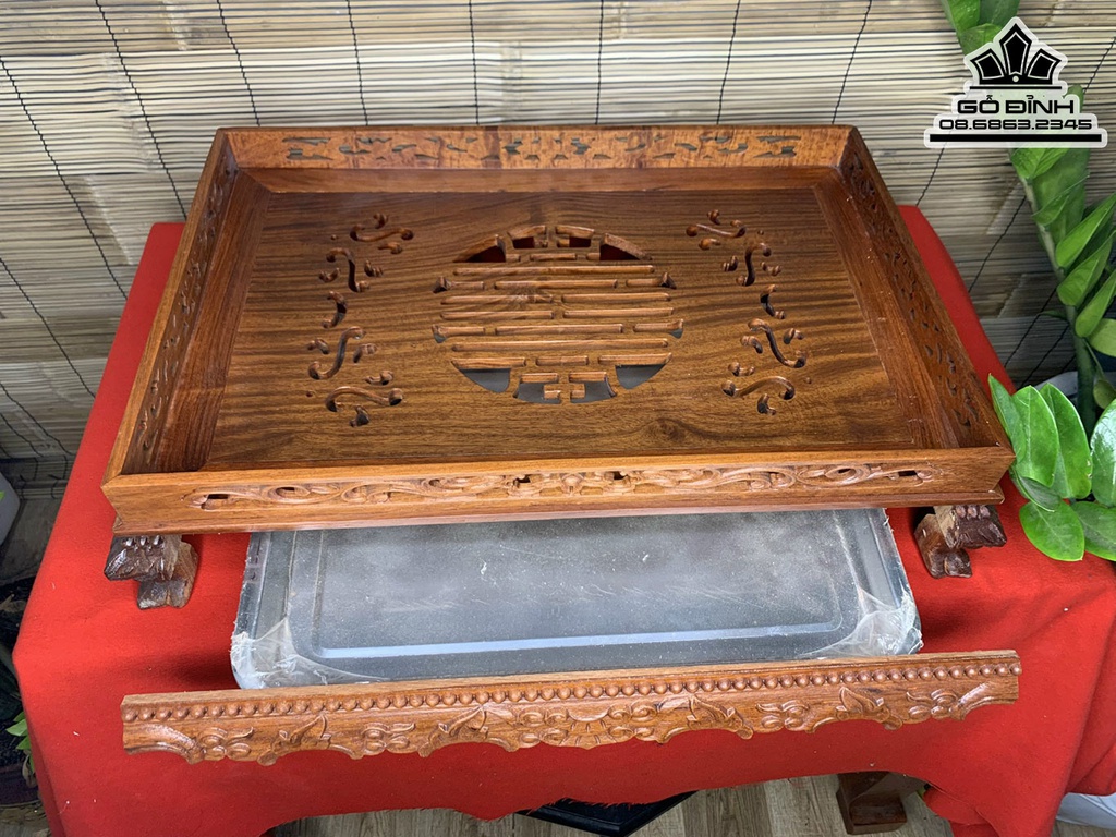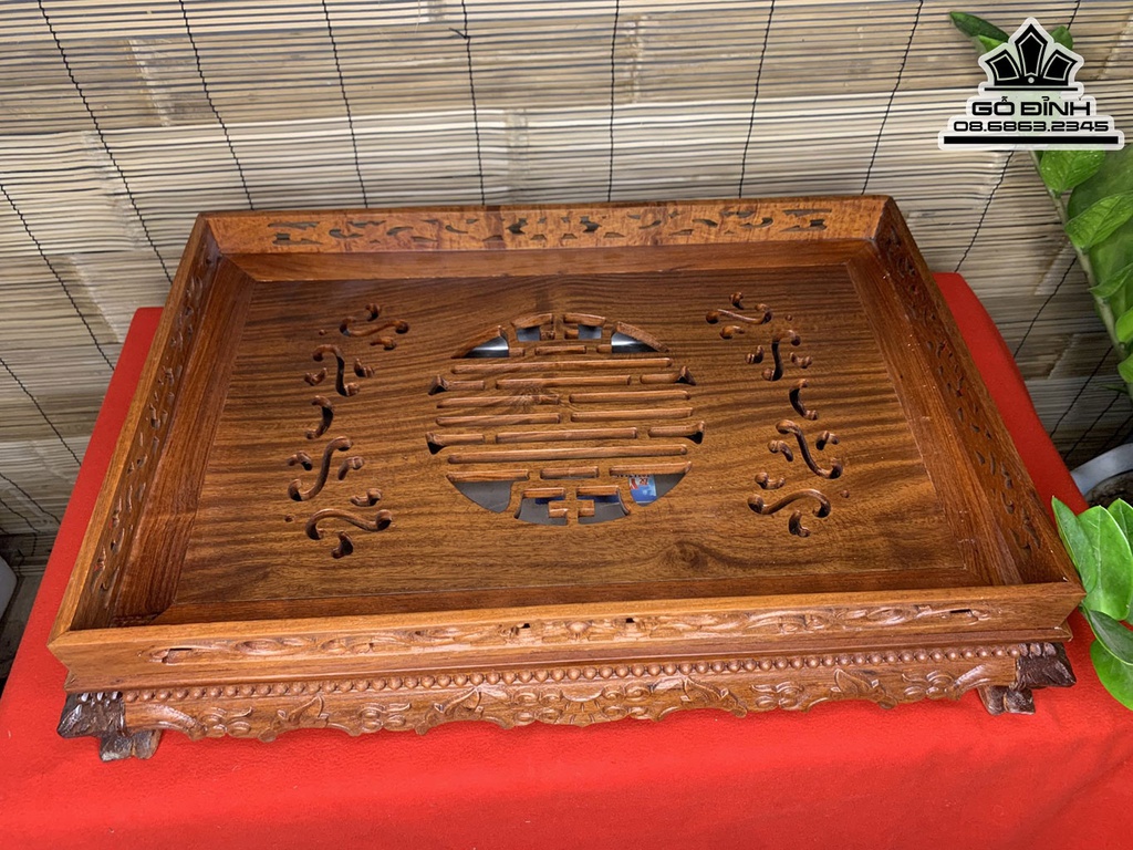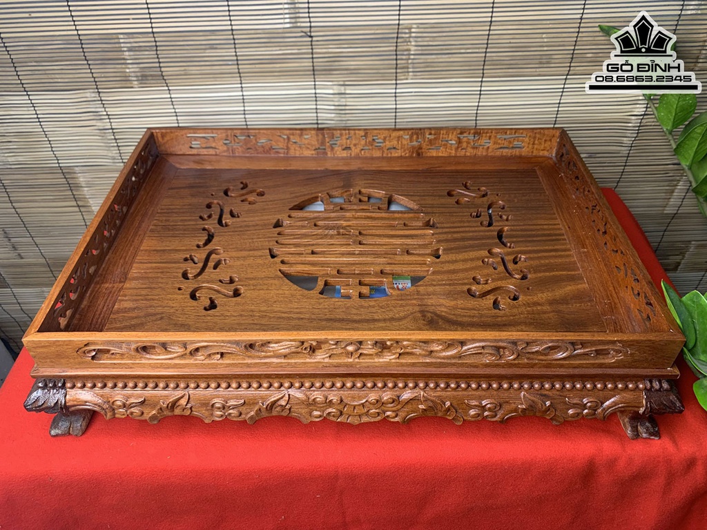 Khay Trà Chân Rồng Gỗ Hương Dài 12 Rộng 55 Dày 48 (cm)