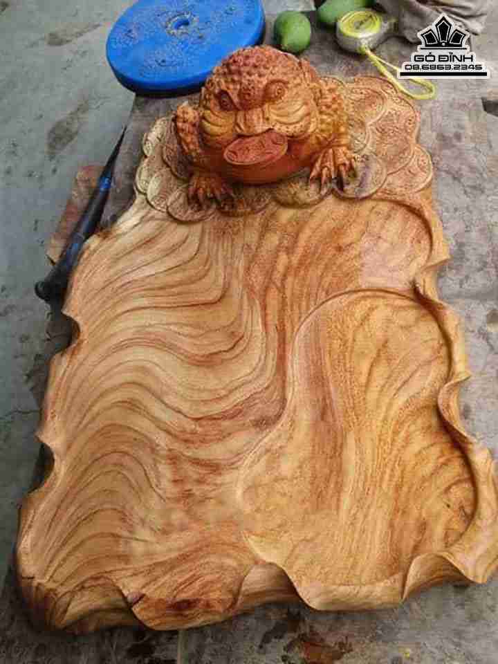 Khay Trà Cóc Ngậm Tiền Gỗ Gõ Đỏ ( Cate ) Cao 6 Dài 60 Rộng 45 (cm)