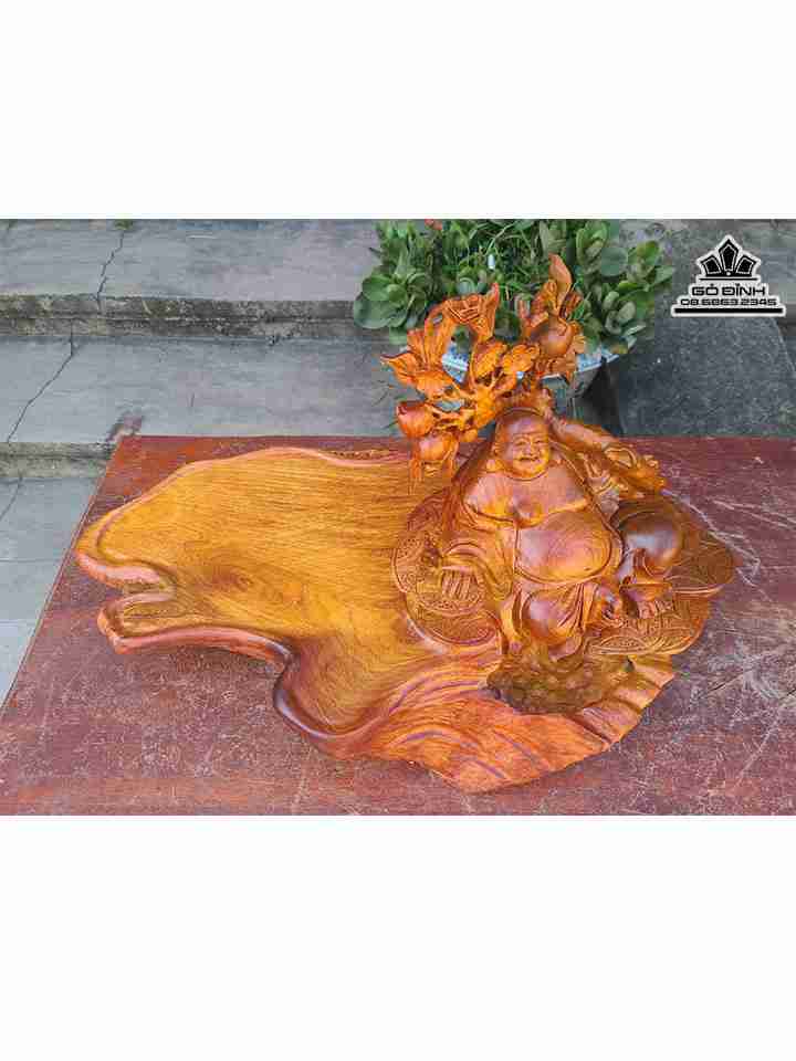Khay Trà Di Lặc Vác Cành Đào Gỗ Hương Cao 28 Ngang 55 Sâu 29 (cm)