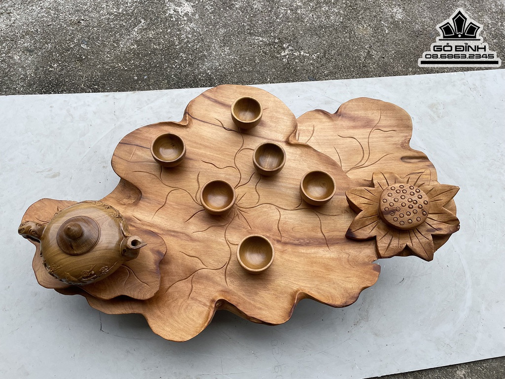 Khay Trà Đục Lá Hoa Sen Gỗ Ngọc Am